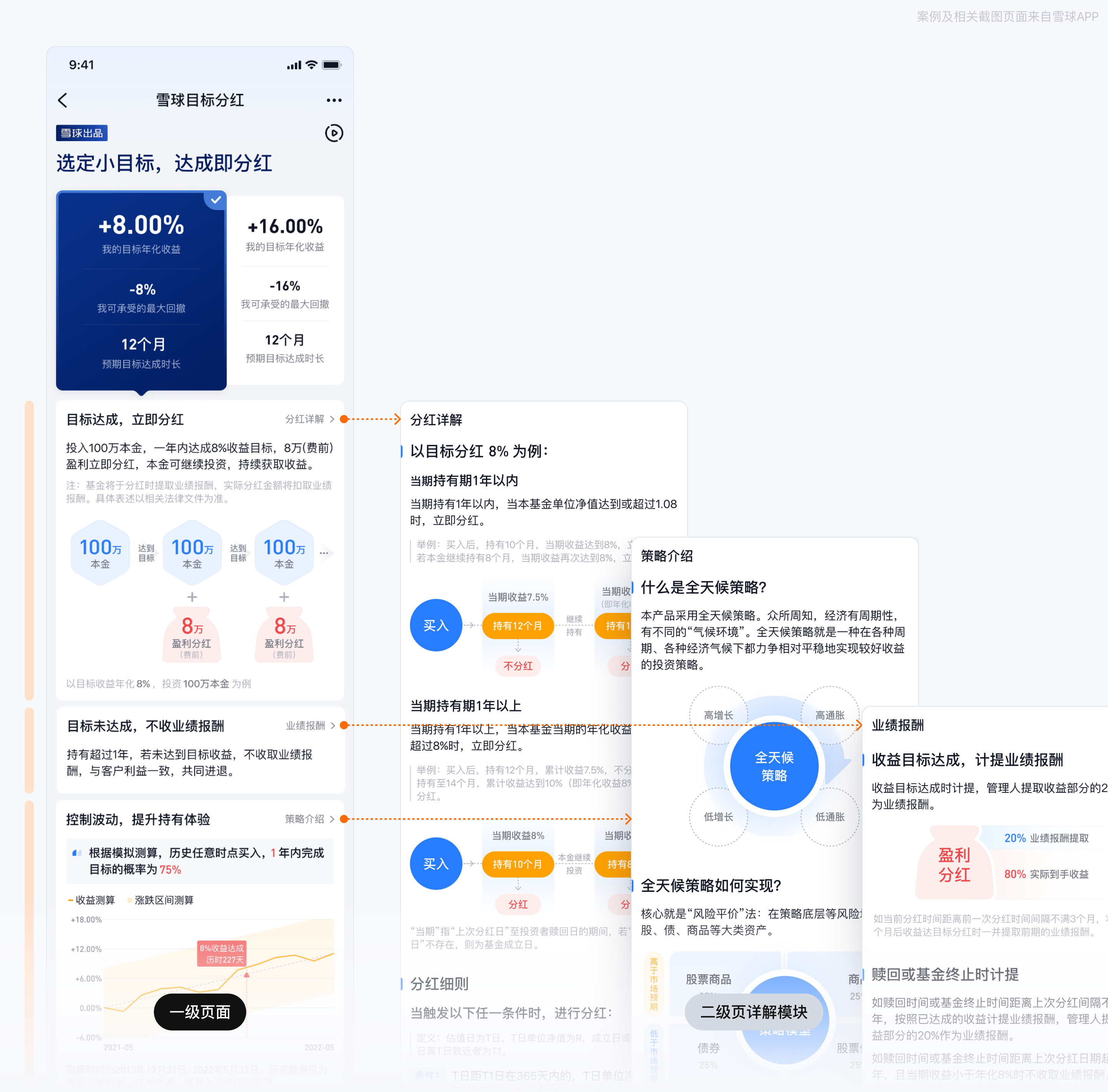 示例:面对复杂的金融供给创新试点产品“雪球私募目标分红”,我们要如何让用户轻松地get到产品的优势,激发用户产生兴趣并形成购买行为呢?
