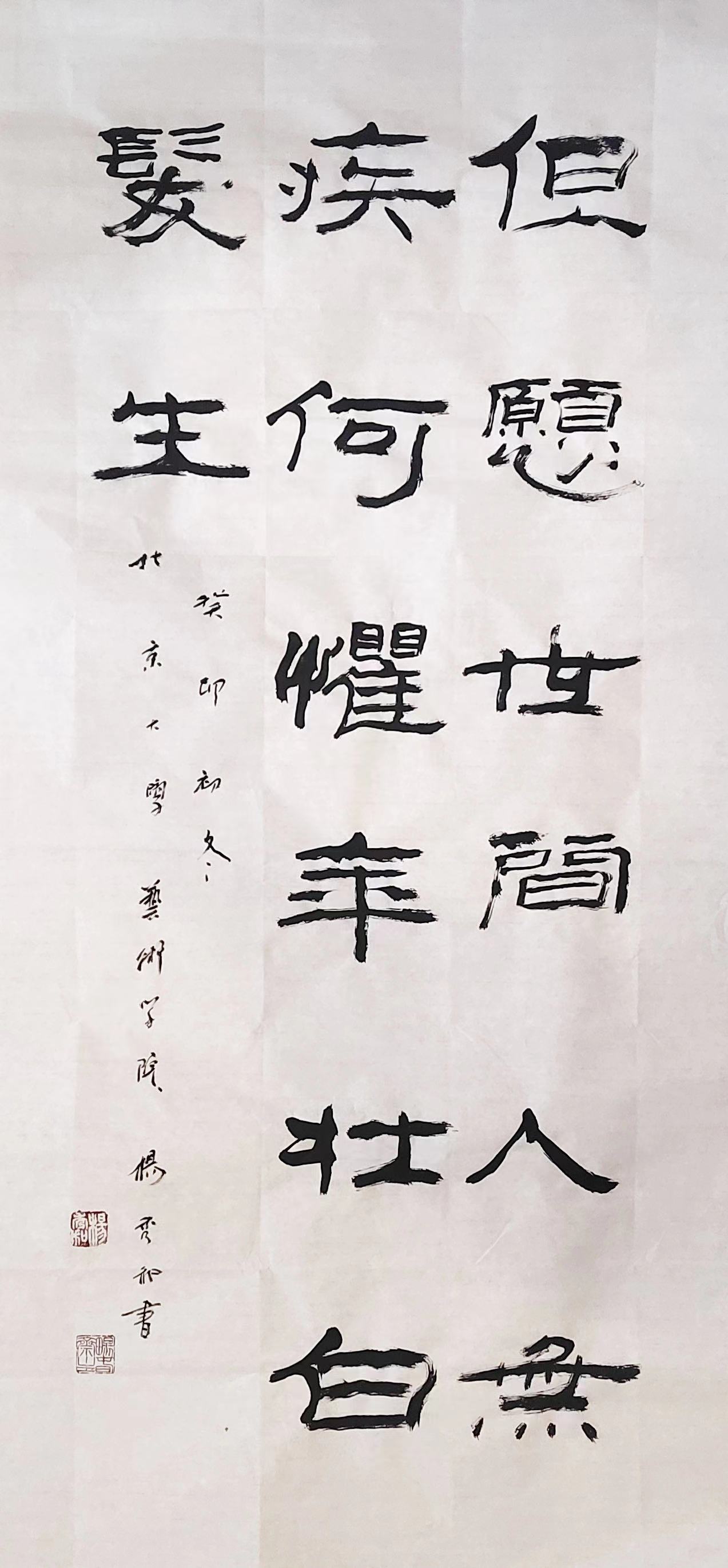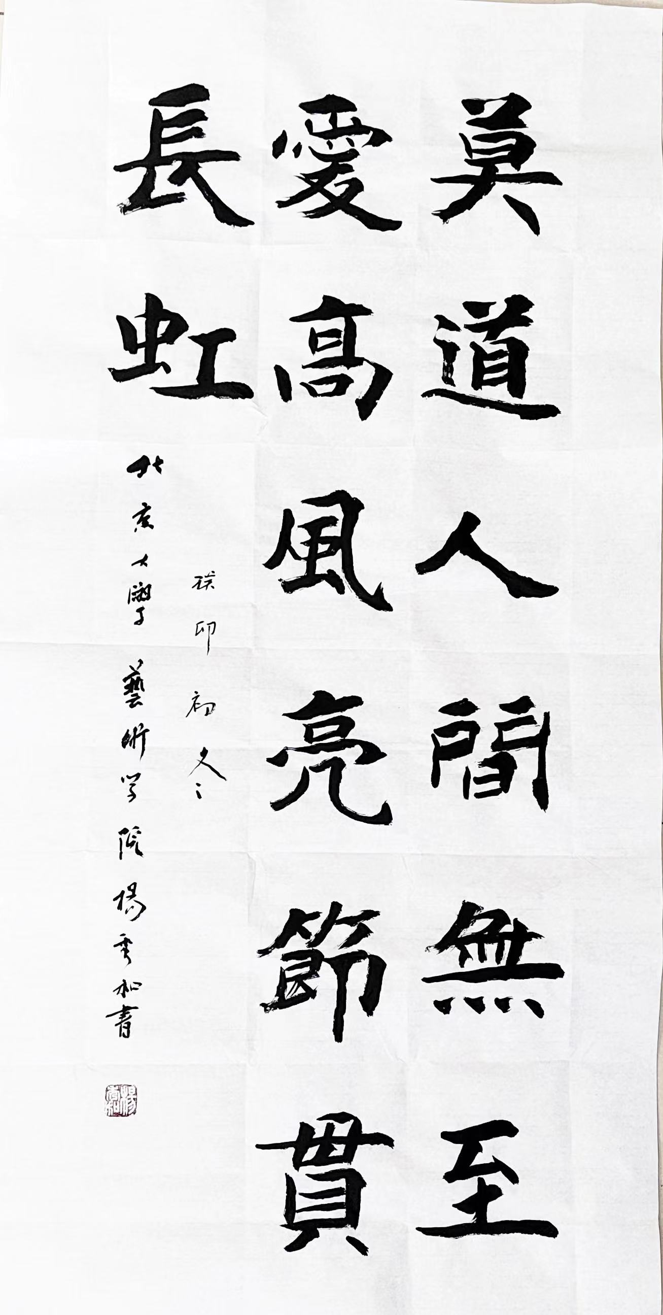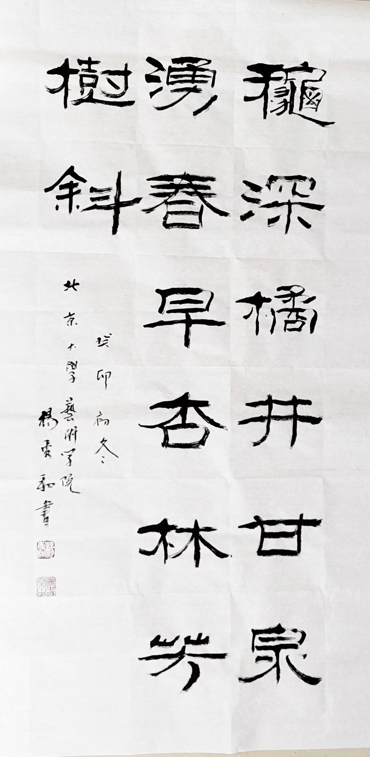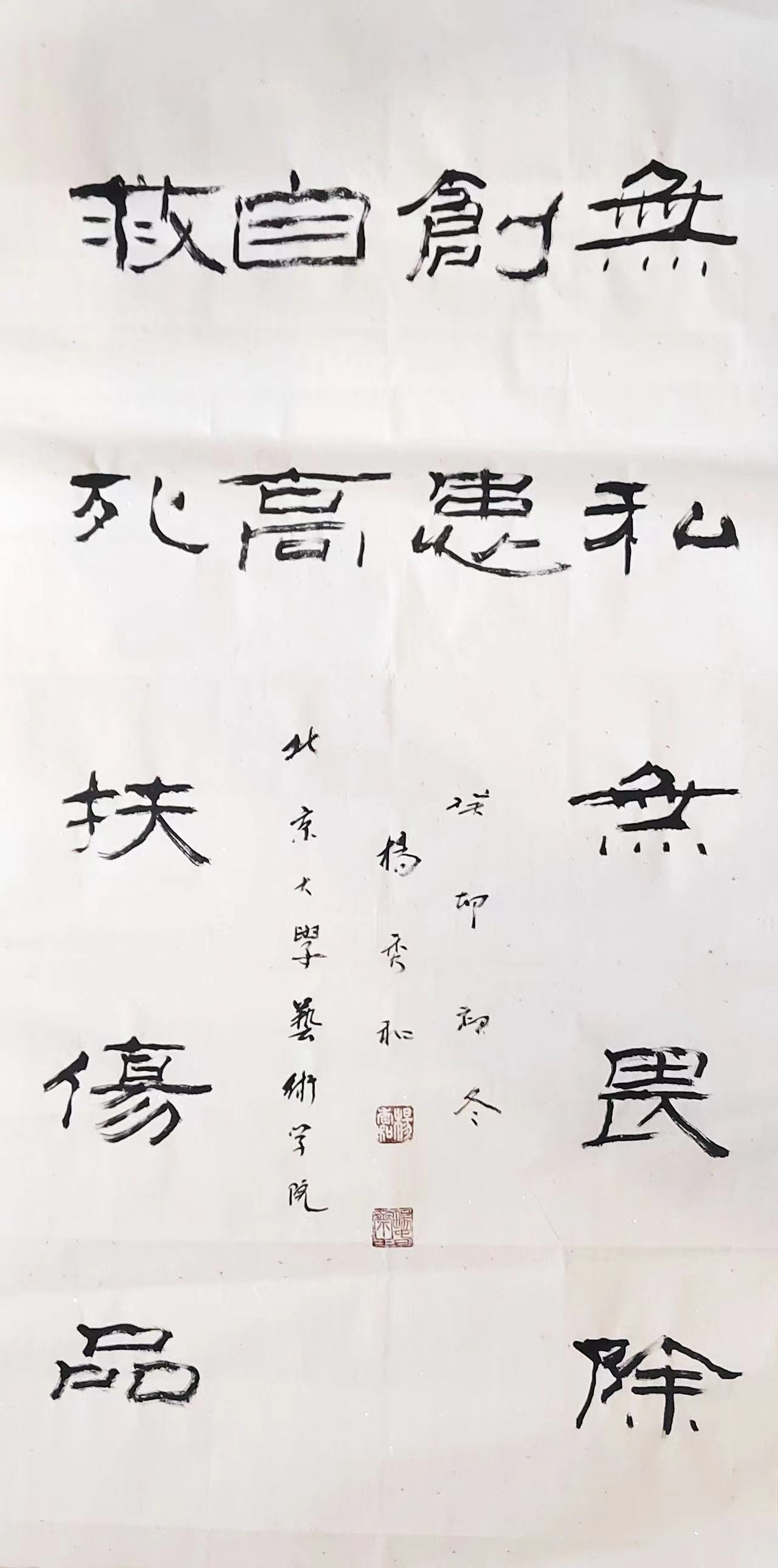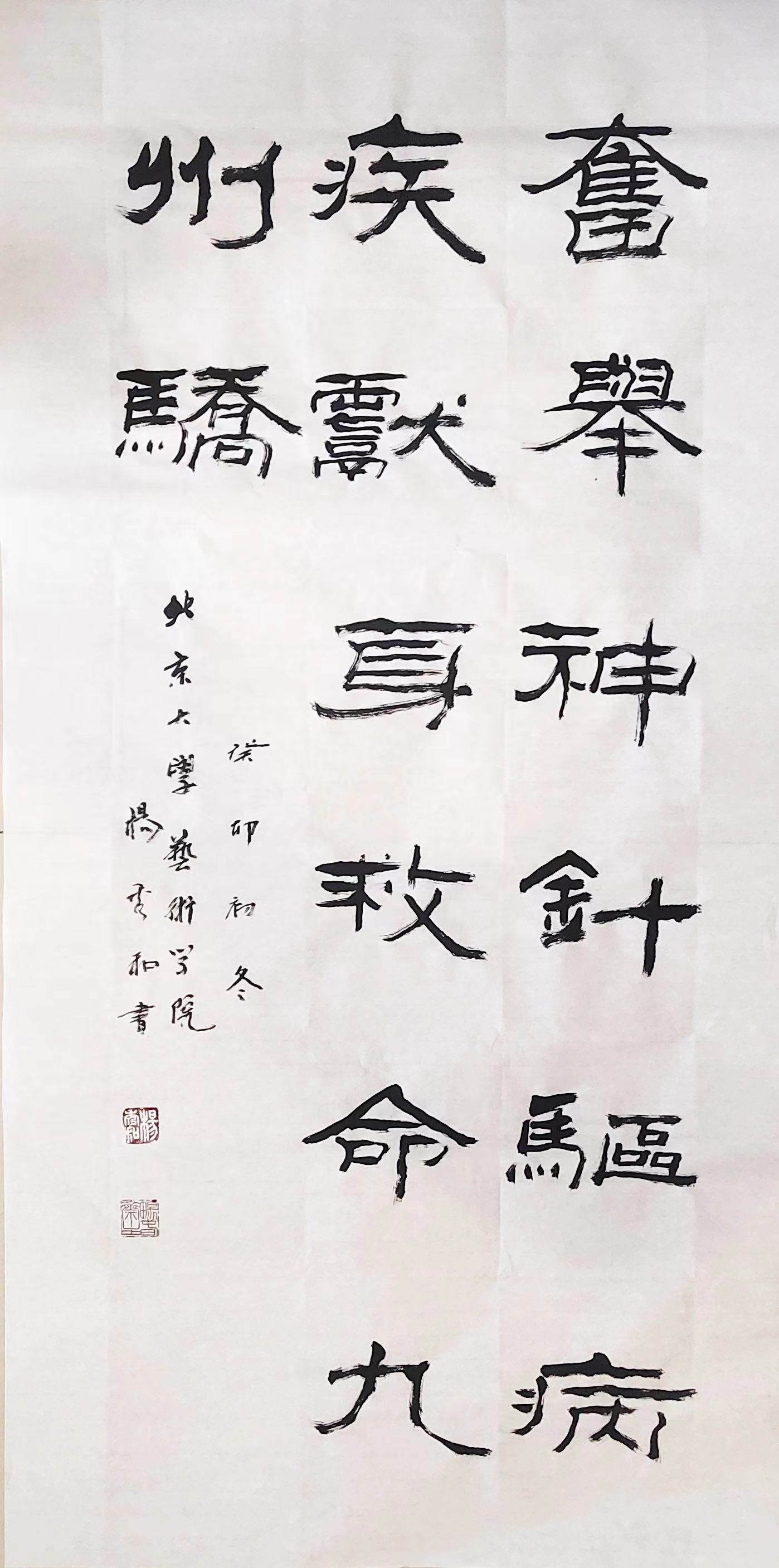 当代隶书大家刘炳森先生曾评价说:“杨秀和的师傅刘汉春先生是我的师兄,我师兄学生众多,却只收了他这一个入室弟子,师兄极少称赞学生,但曾当着我的面夸奖过他多次,每次都是同样一句话‘秀和的字写的还行’。”