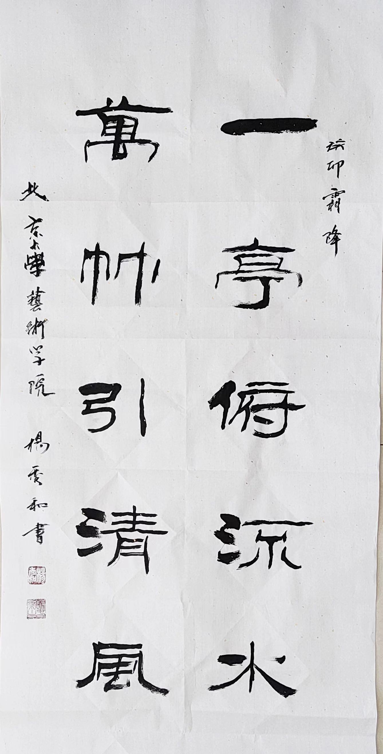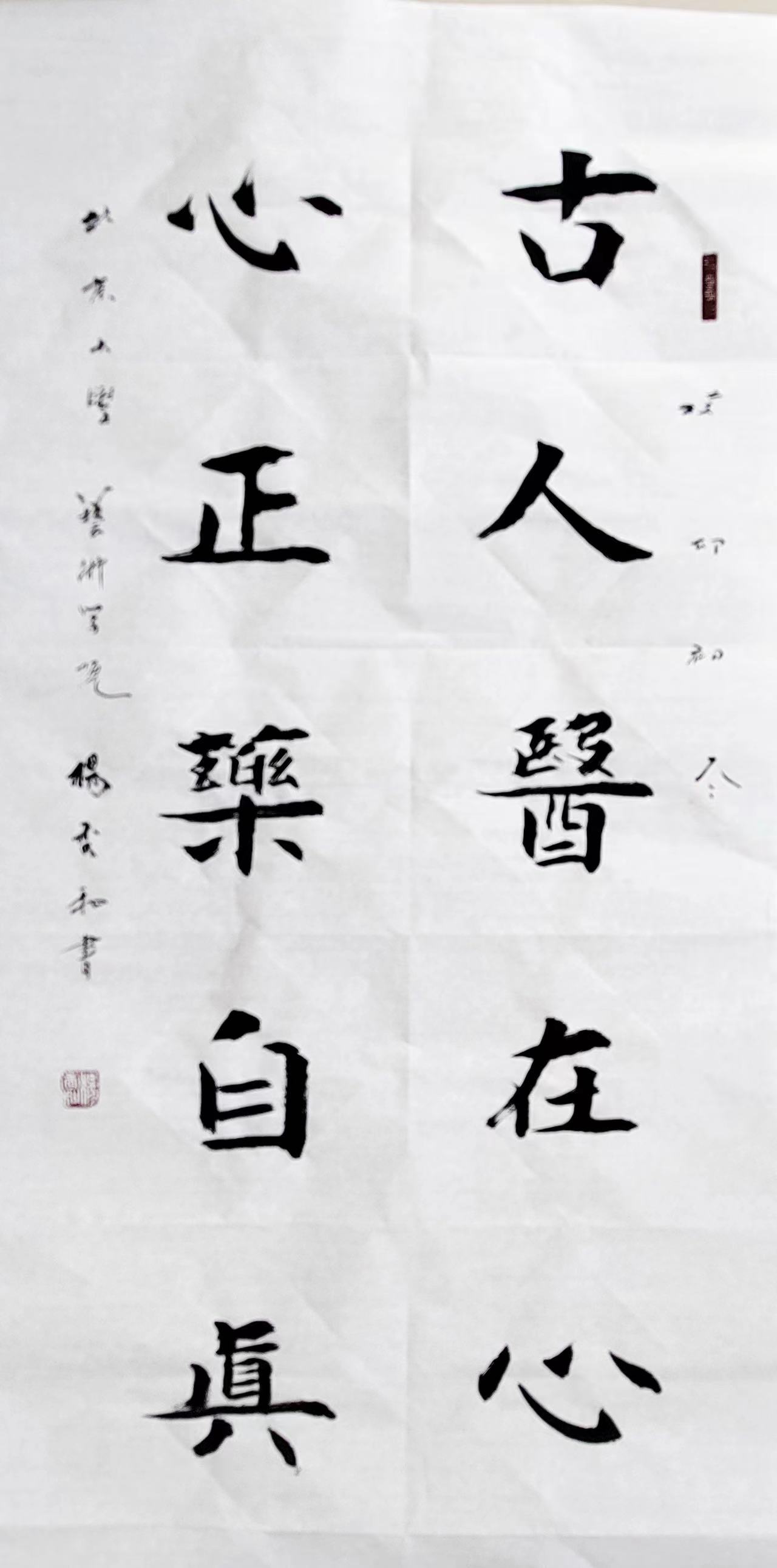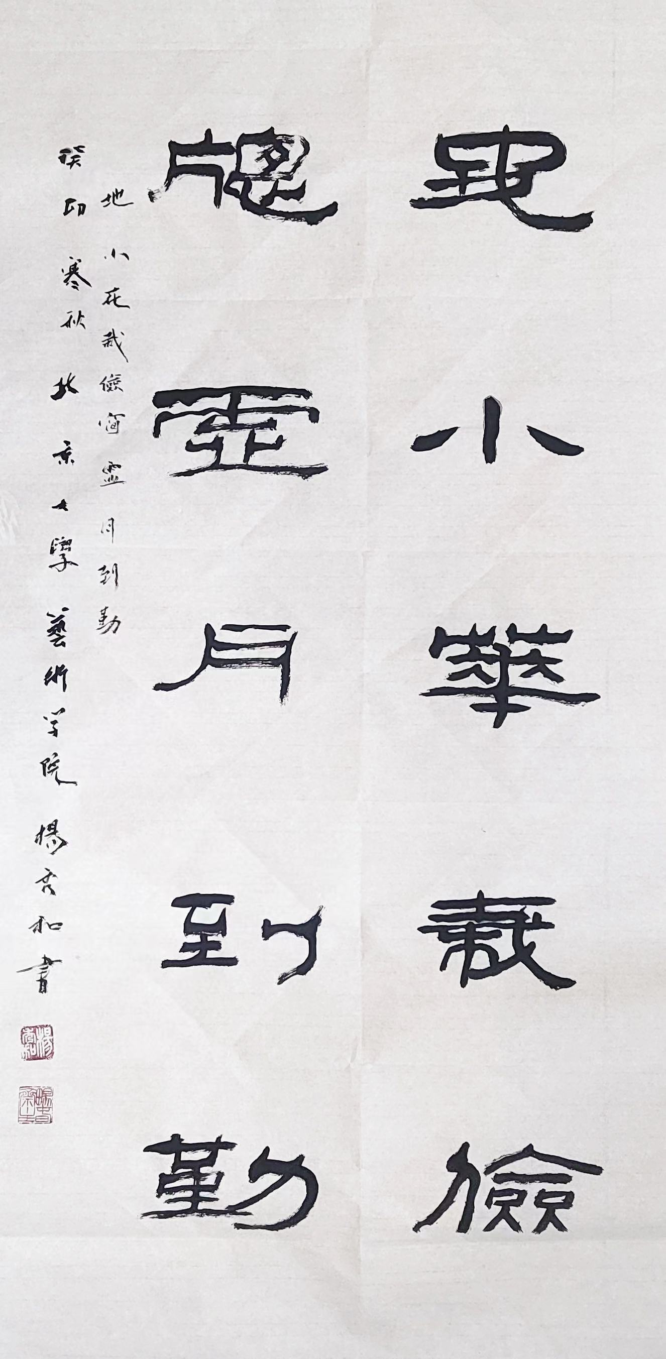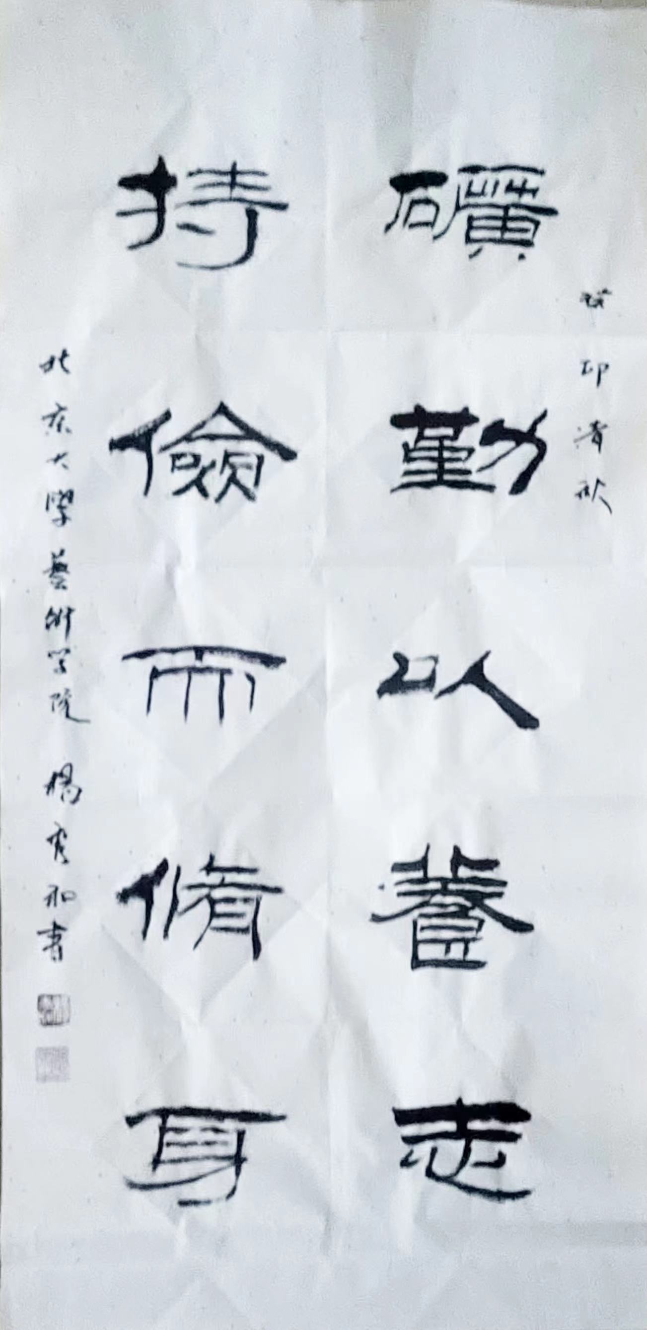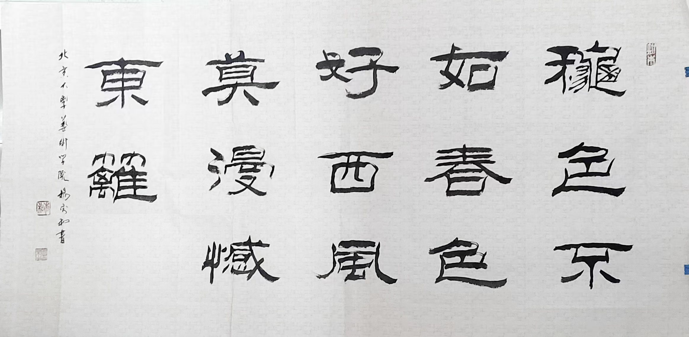当代隶书大家刘炳森先生曾评价说:“杨秀和的师傅刘汉春先生是我的师兄,我师兄学生众多,却只收了他这一个入室弟子,师兄极少称赞学生,但曾当着我的面夸奖过他多次,每次都是同样一句话‘秀和的字写的还行’。”