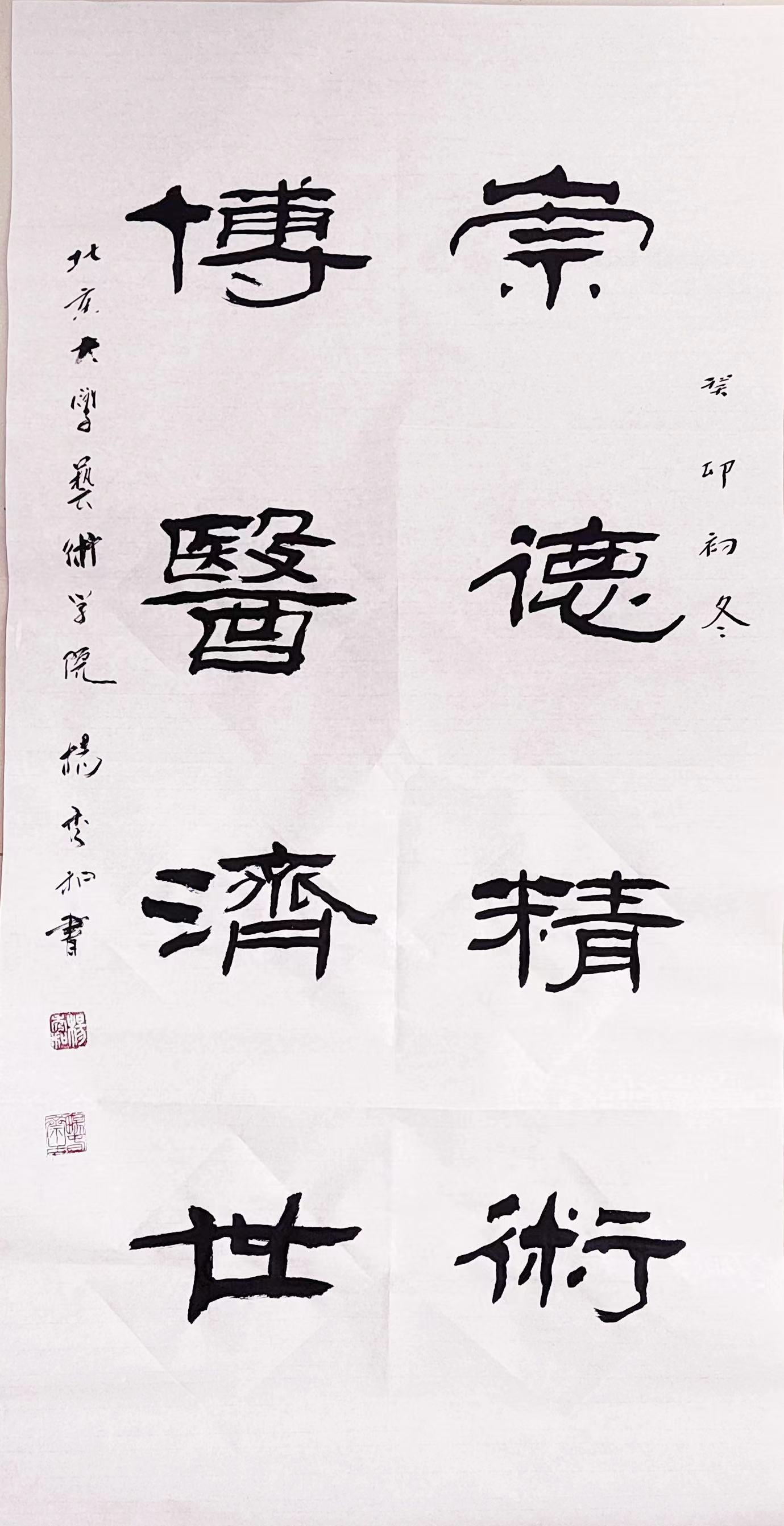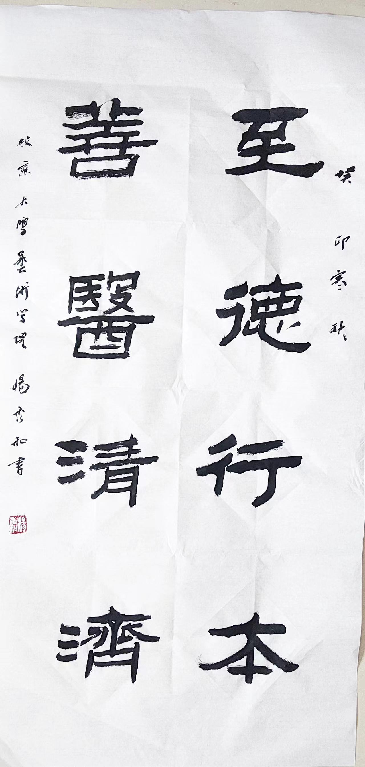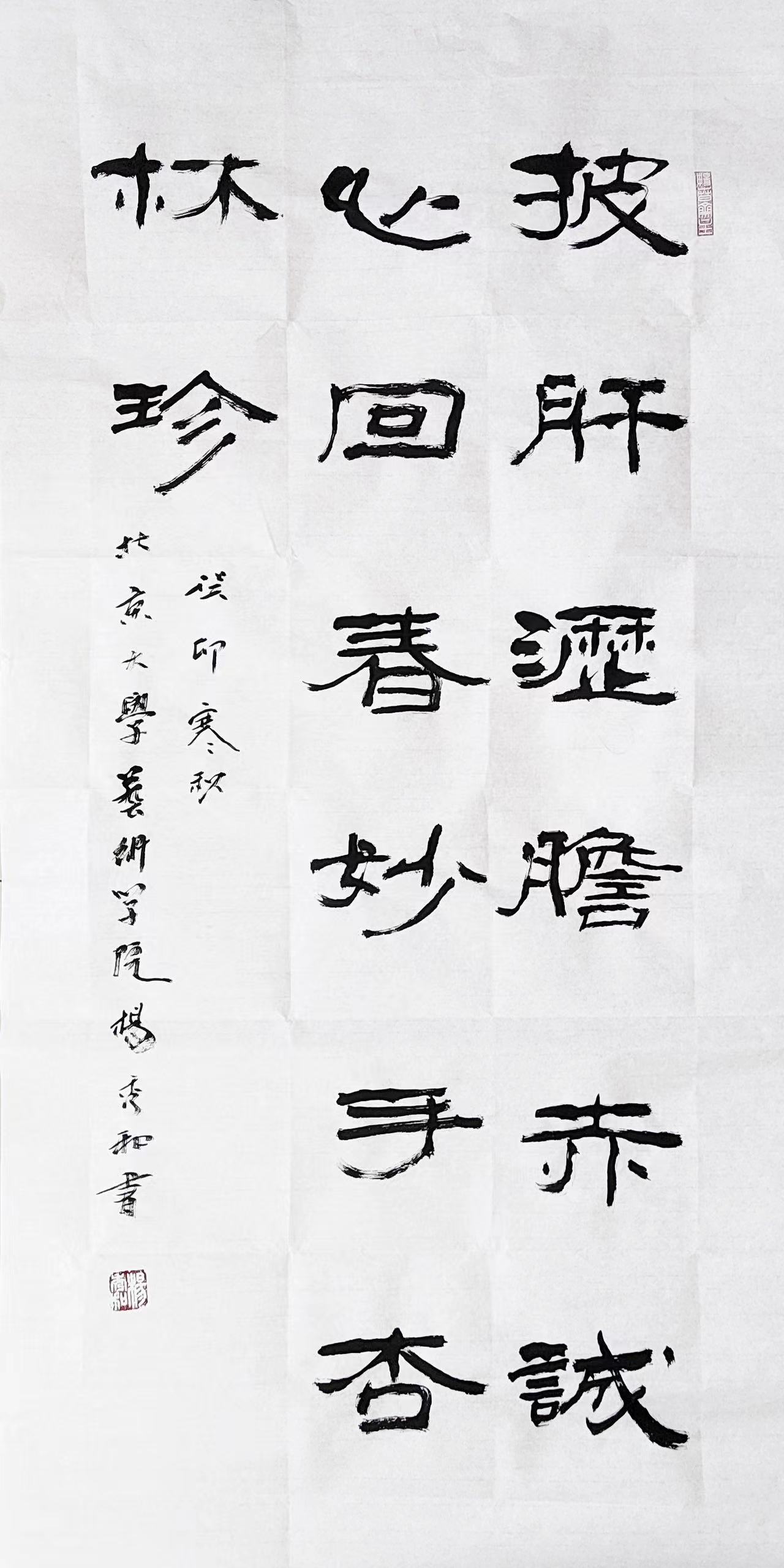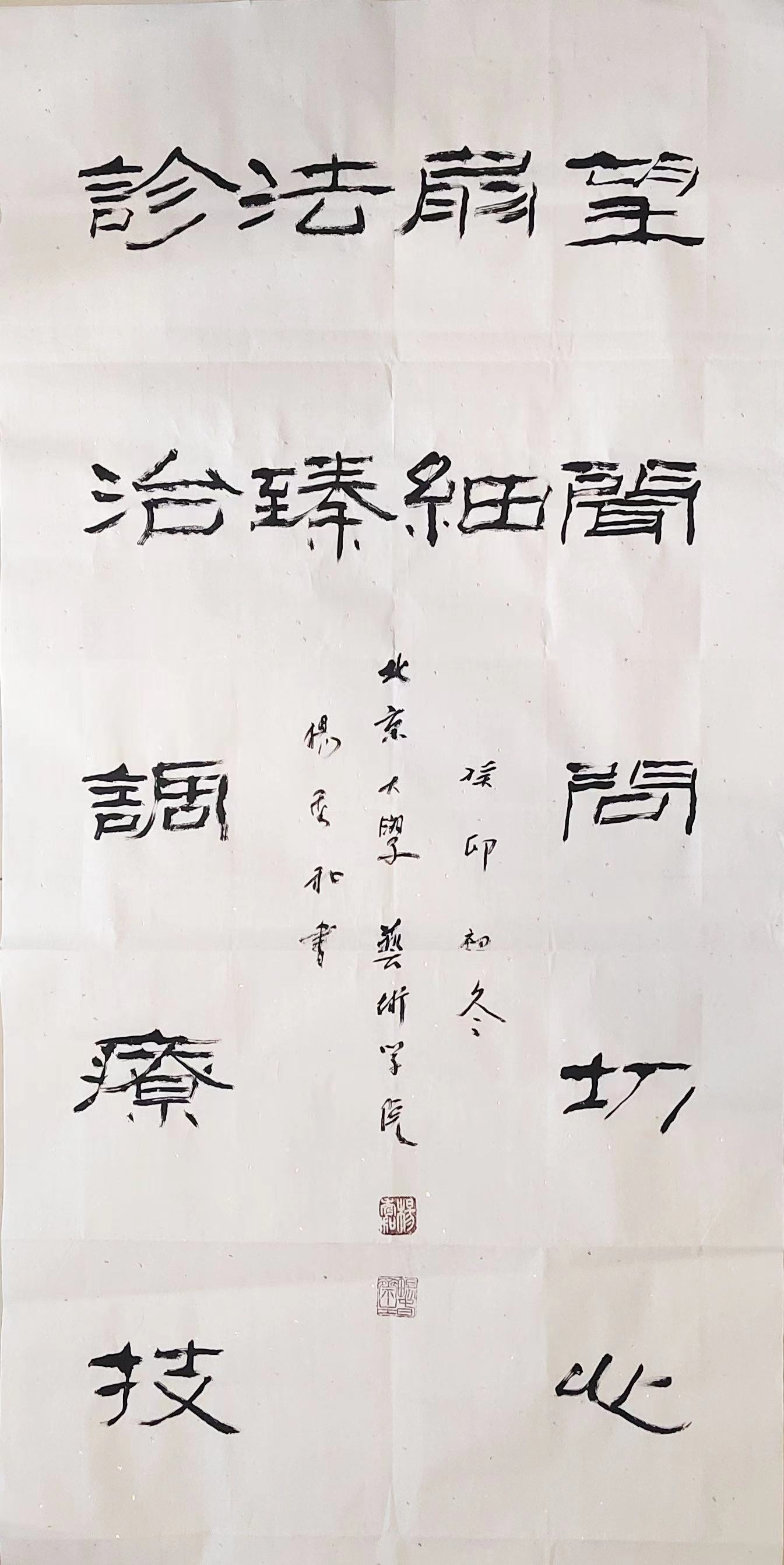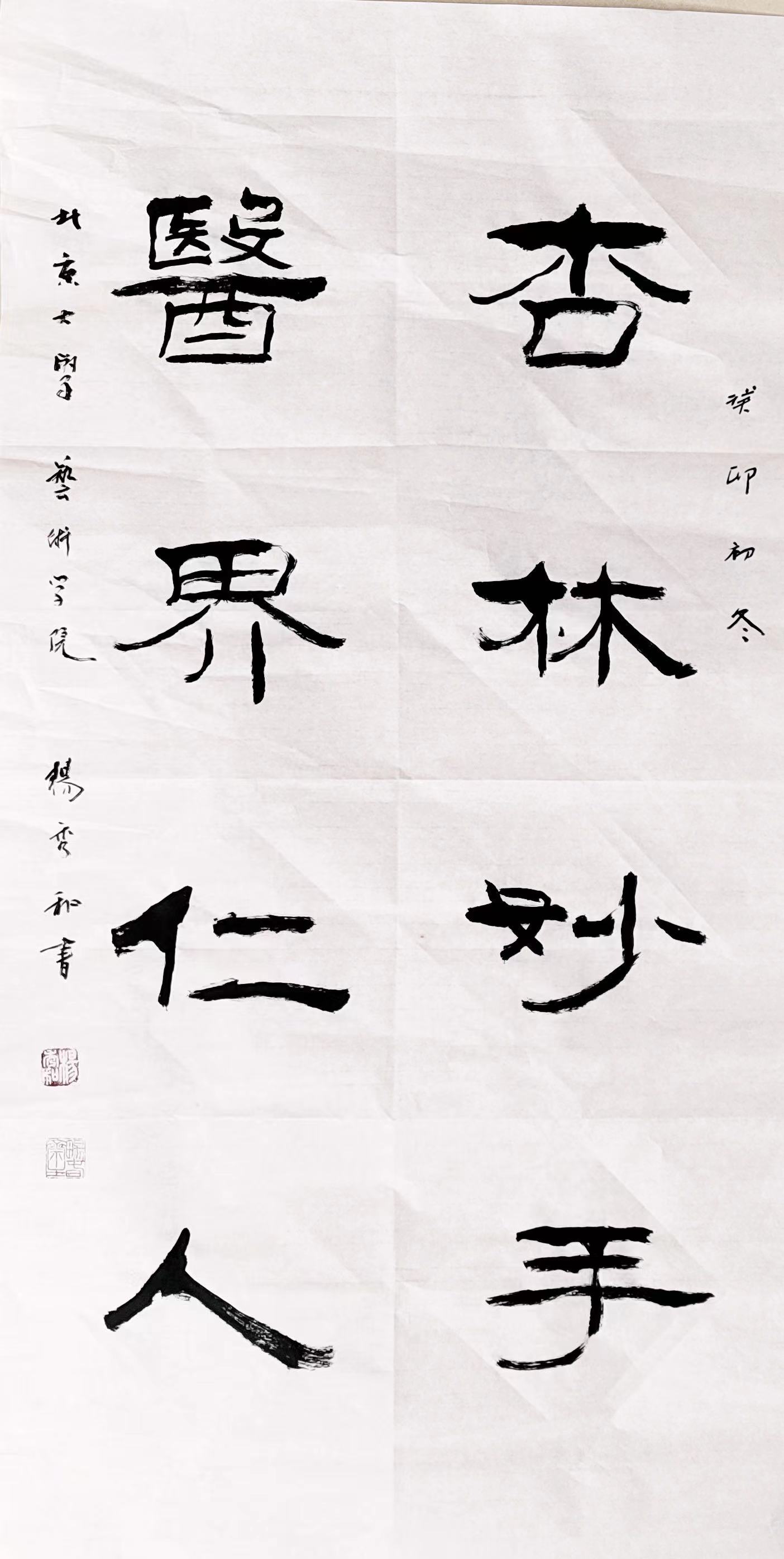 当代隶书大家刘炳森先生曾评价说:“杨秀和的师傅刘汉春先生是我的师兄,我师兄学生众多,却只收了他这一个入室弟子,师兄极少称赞学生,但曾当着我的面夸奖过他多次,每次都是同样一句话‘秀和的字写的还行’。”