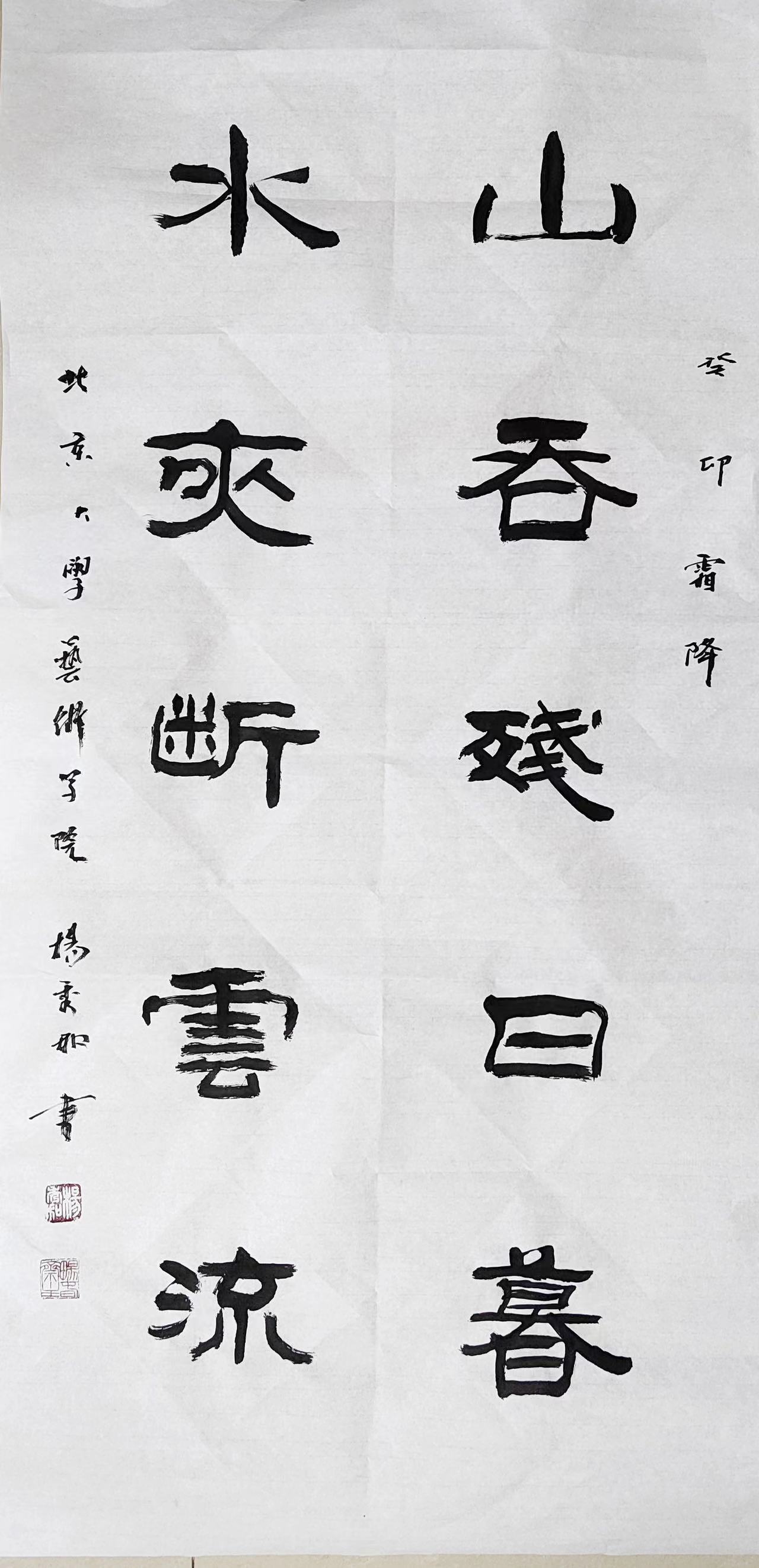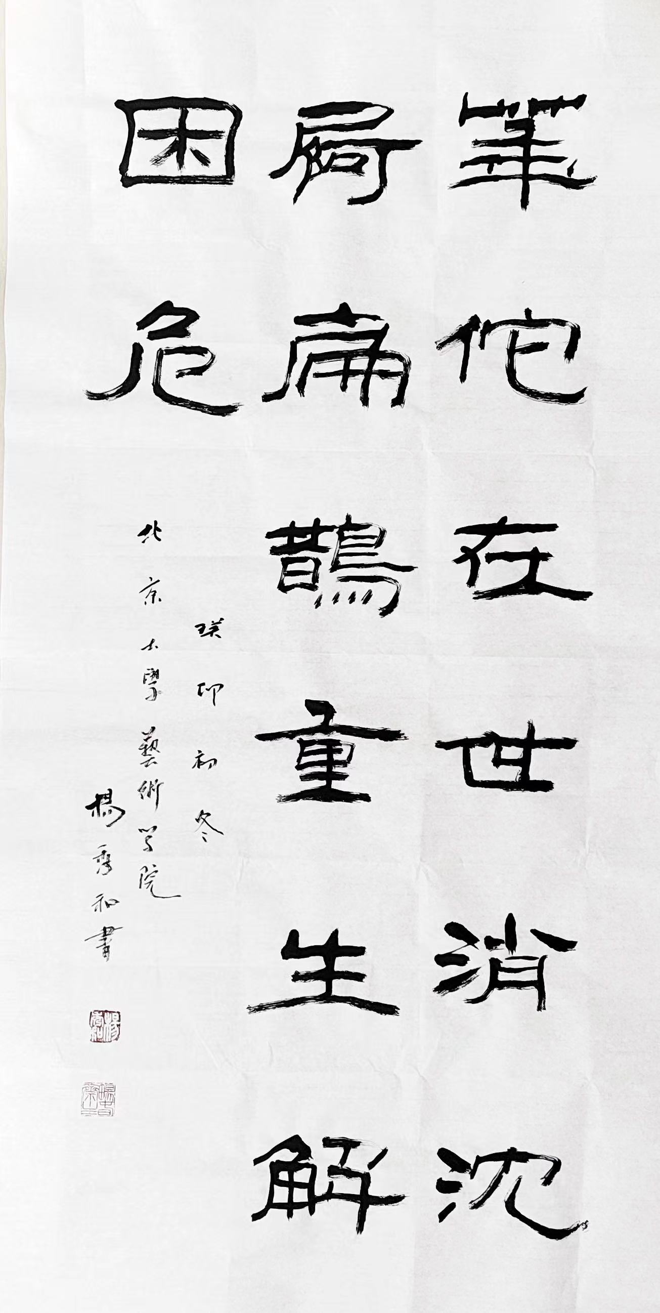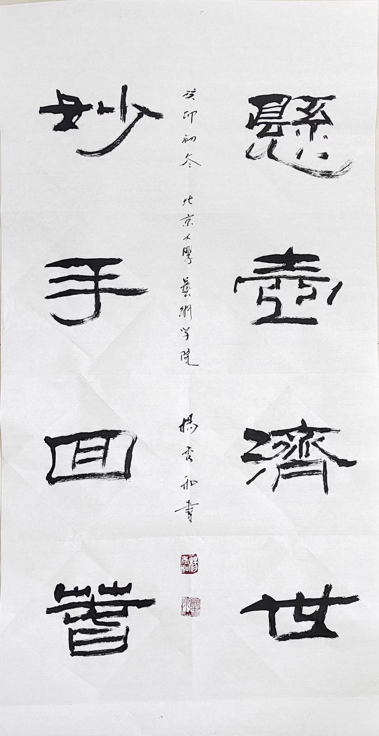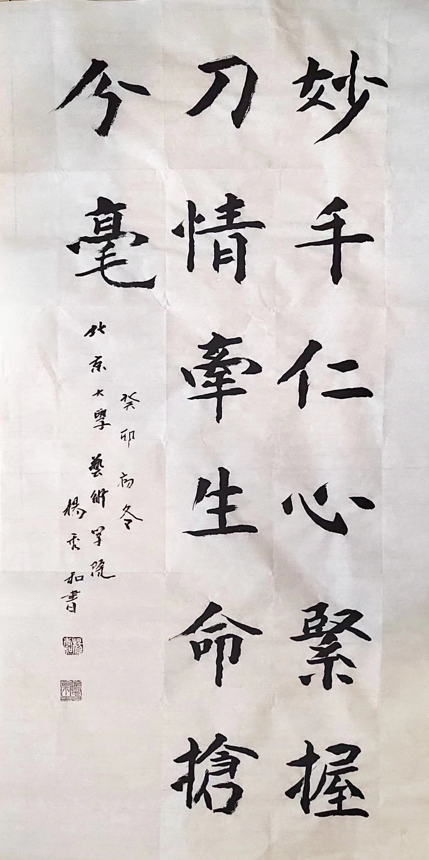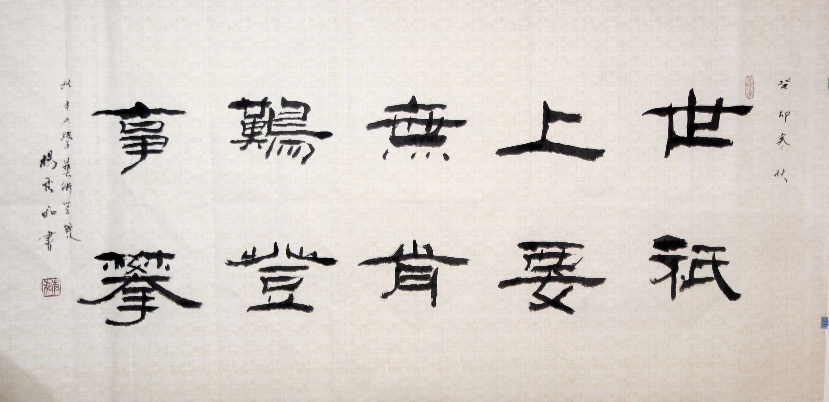 当代隶书大家刘炳森先生曾评价说:“杨秀和的师傅刘汉春先生是我的师兄,我师兄学生众多,却只收了他这一个入室弟子,师兄极少称赞学生,但曾当着我的面夸奖过他多次,每次都是同样一句话‘秀和的字写的还行’。”