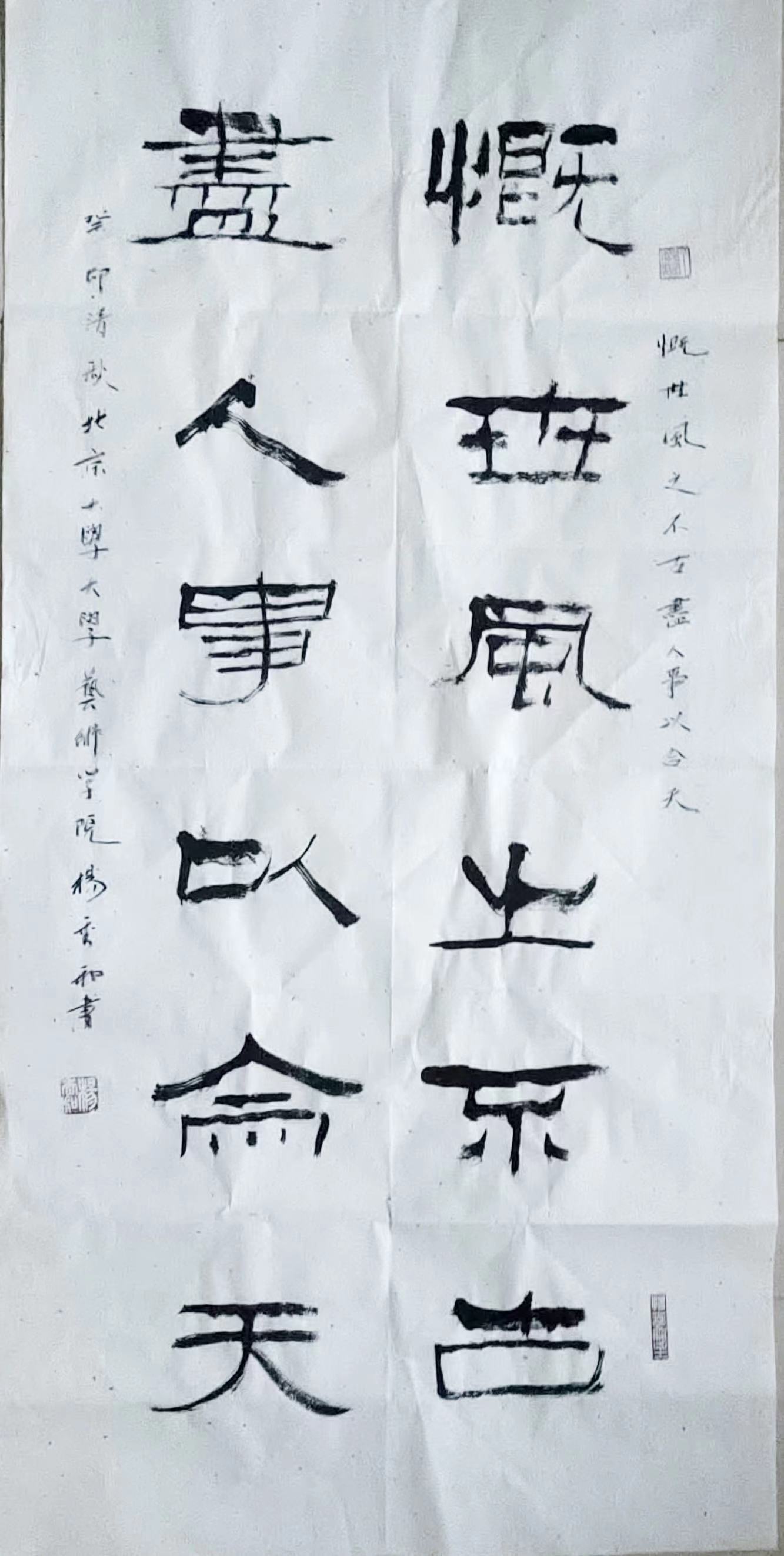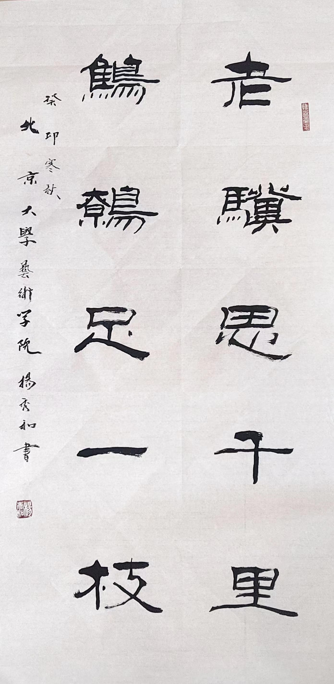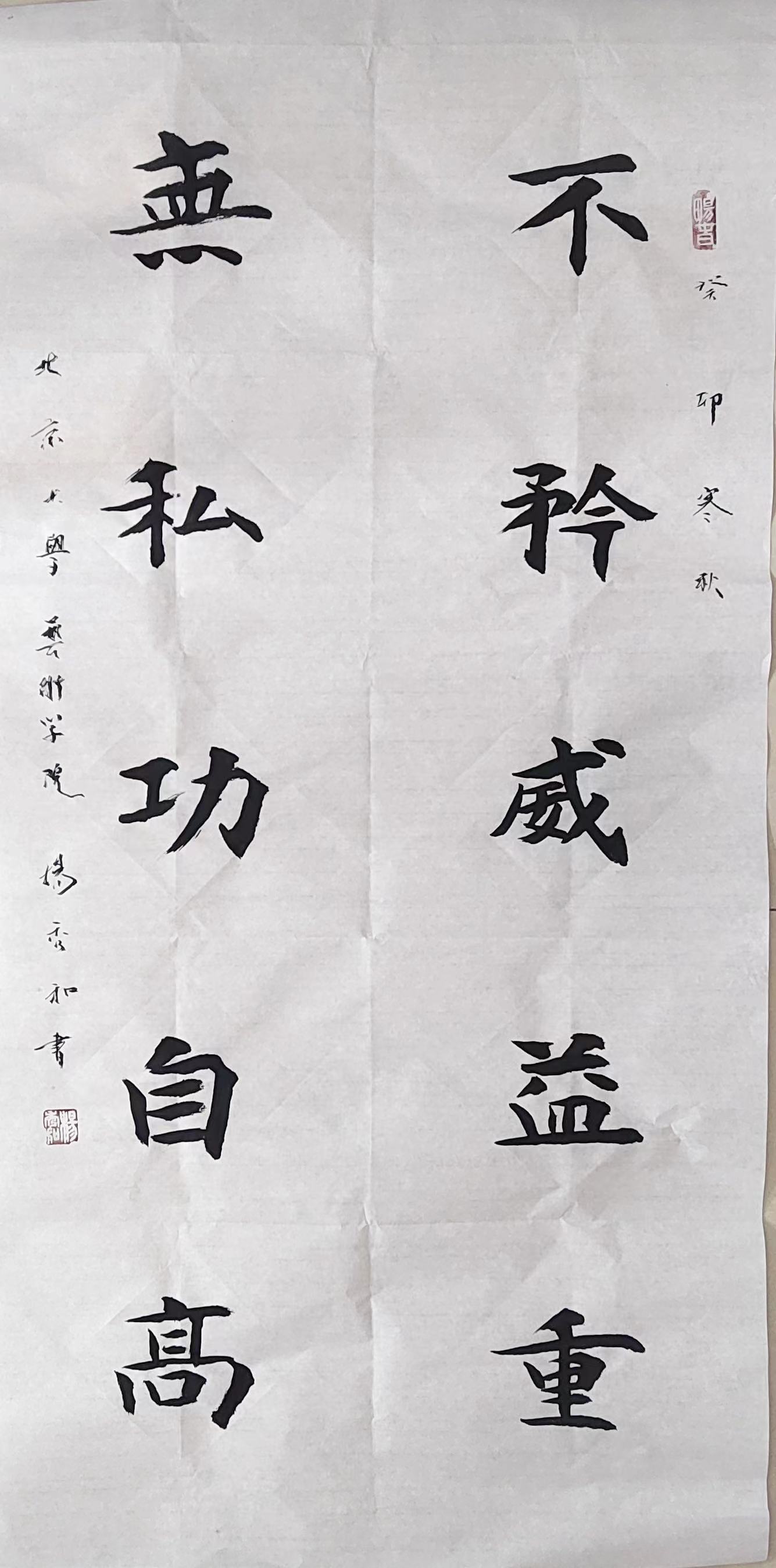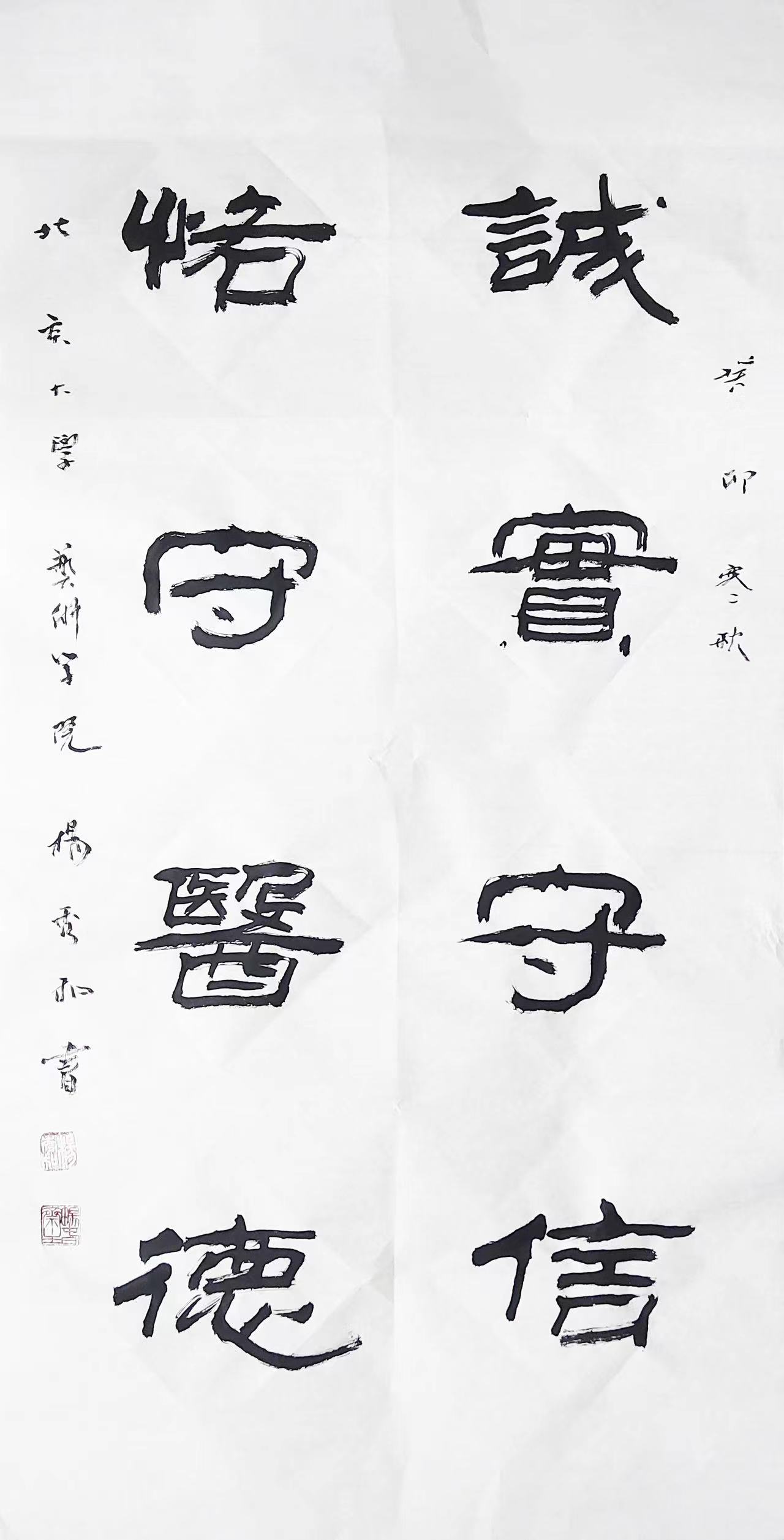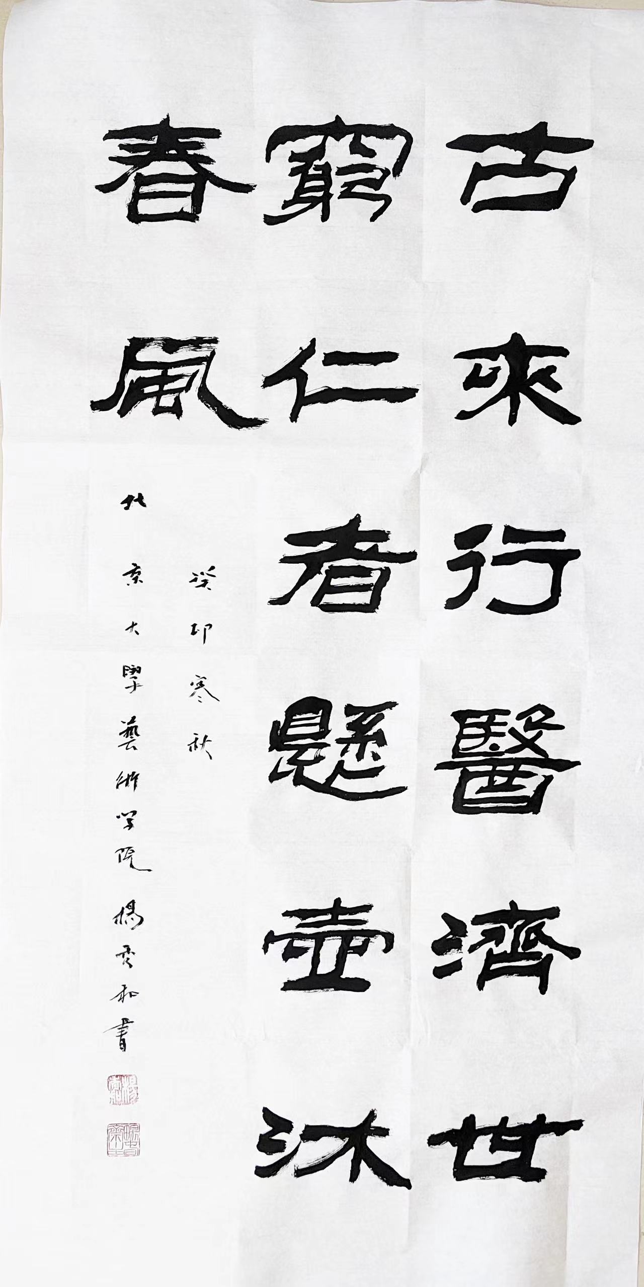 当代隶书大家刘炳森先生曾评价说:“杨秀和的师傅刘汉春先生是我的师兄,我师兄学生众多,却只收了他这一个入室弟子,师兄极少称赞学生,但曾当着我的面夸奖过他多次,每次都是同样一句话‘秀和的字写的还行’。”