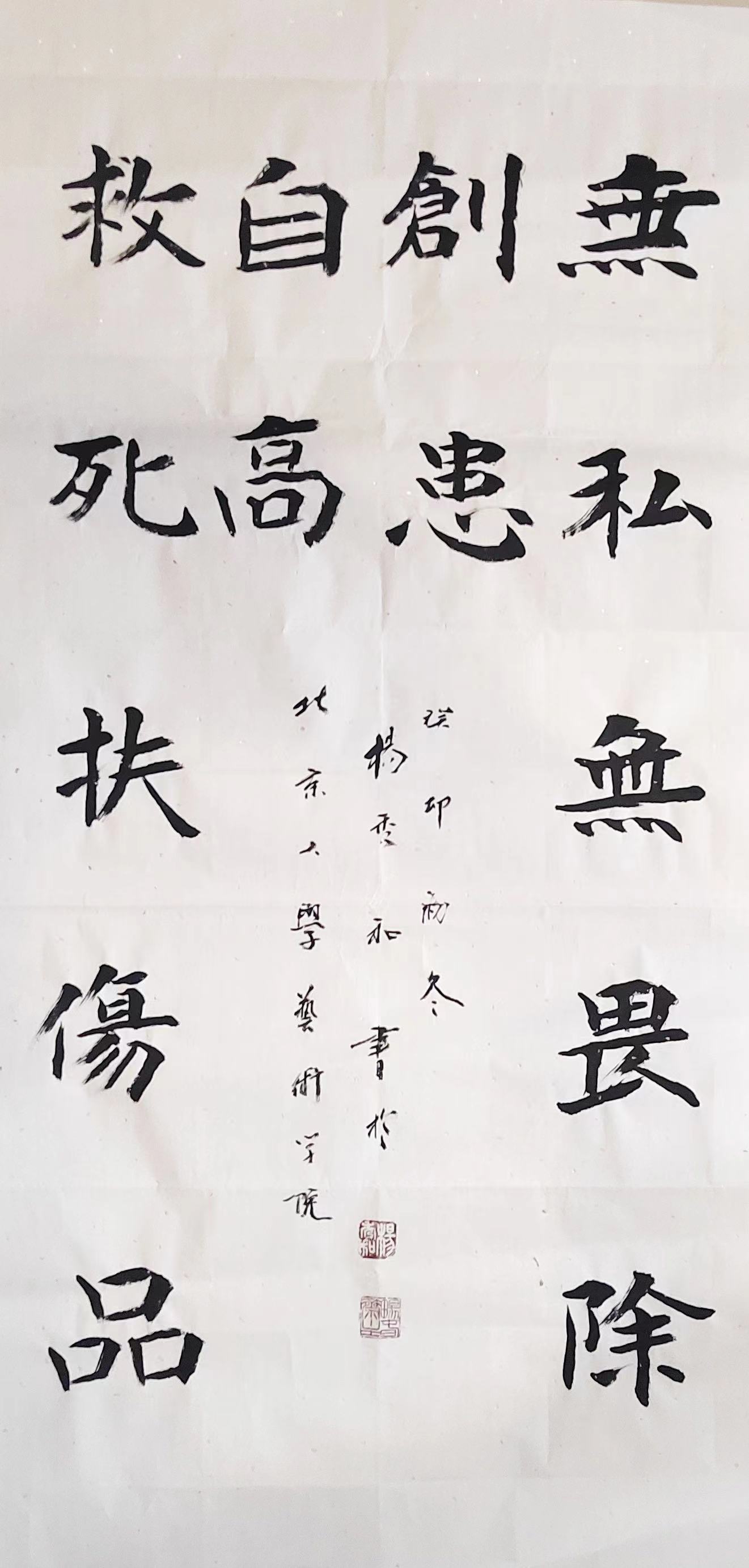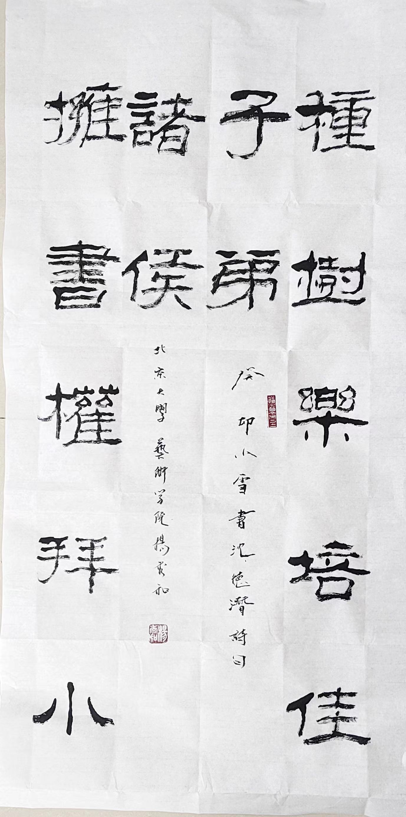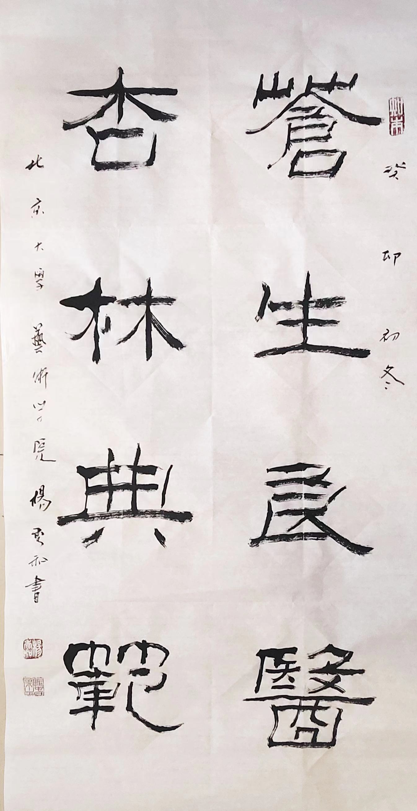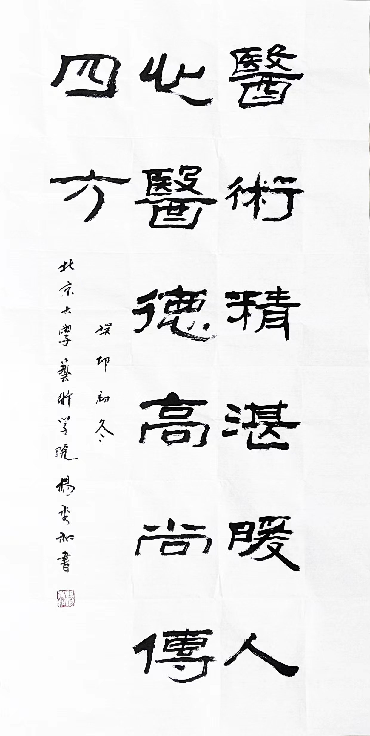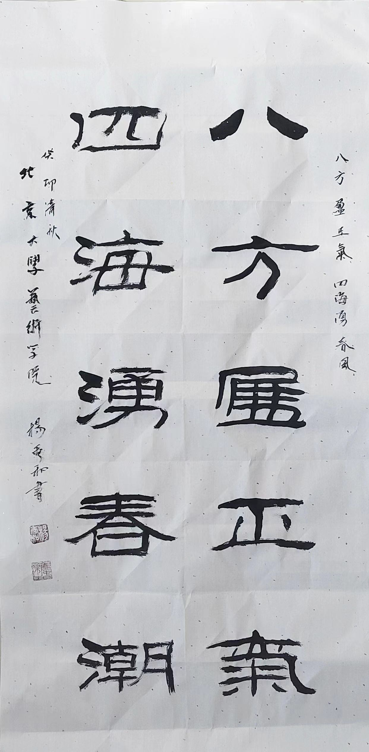 当代隶书大家刘炳森先生曾评价说:“杨秀和的师傅刘汉春先生是我的师兄,我师兄学生众多,却只收了他这一个入室弟子,师兄极少称赞学生,但曾当着我的面夸奖过他多次,每次都是同样一句话‘秀和的字写的还行’。”