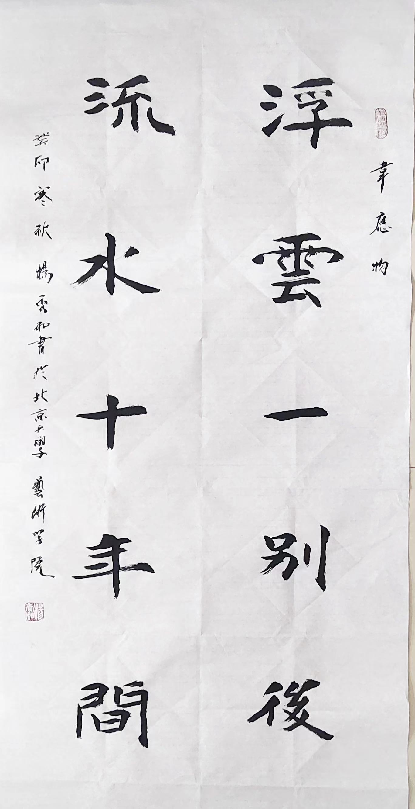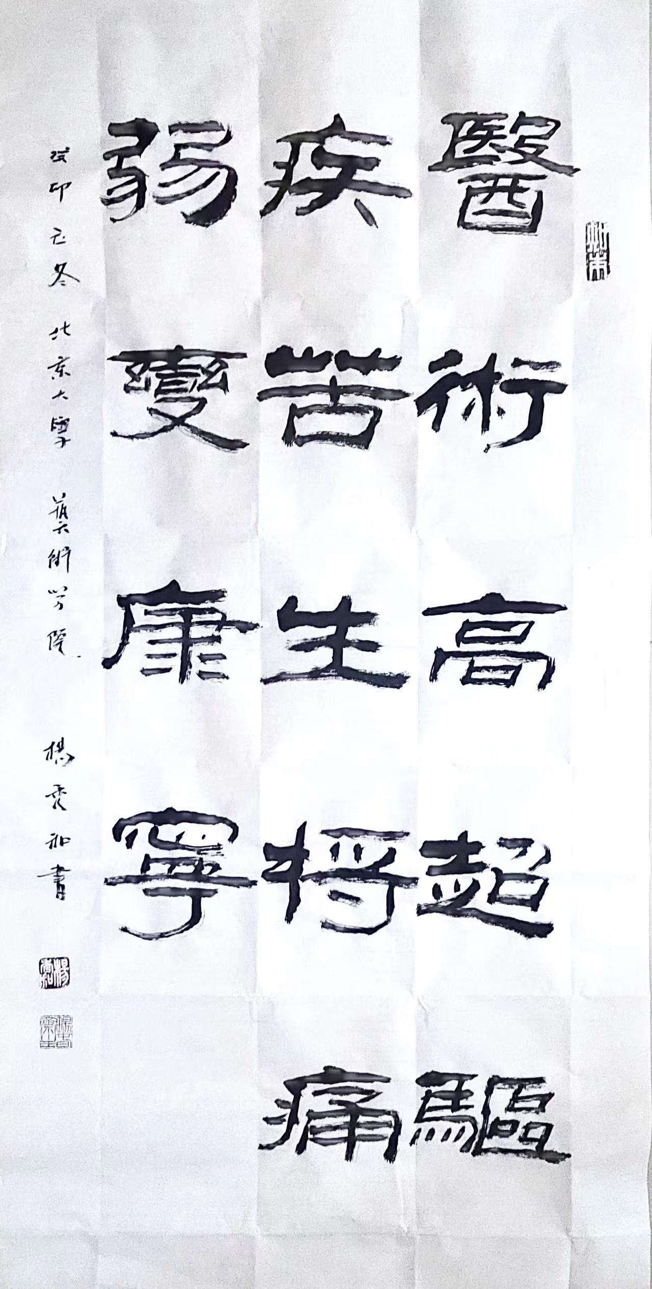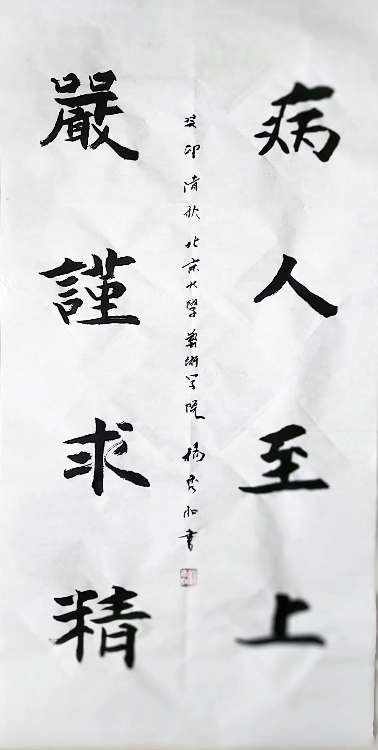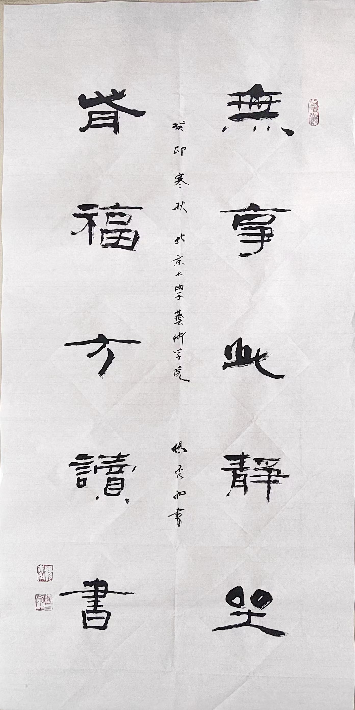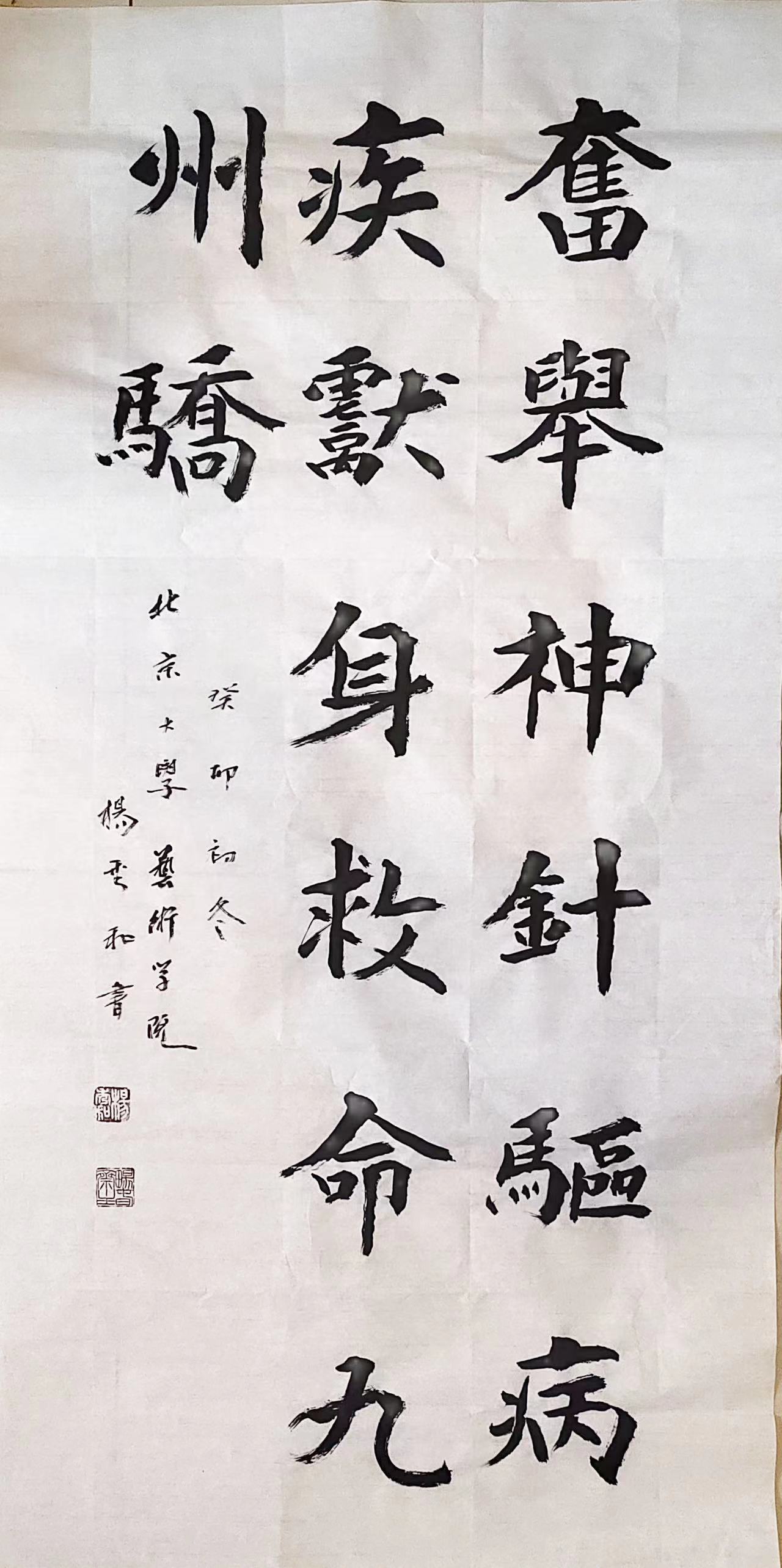 当代隶书大家刘炳森先生曾评价说:“杨秀和的师傅刘汉春先生是我的师兄,我师兄学生众多,却只收了他这一个入室弟子,师兄极少称赞学生,但曾当着我的面夸奖过他多次,每次都是同样一句话‘秀和的字写的还行’。”