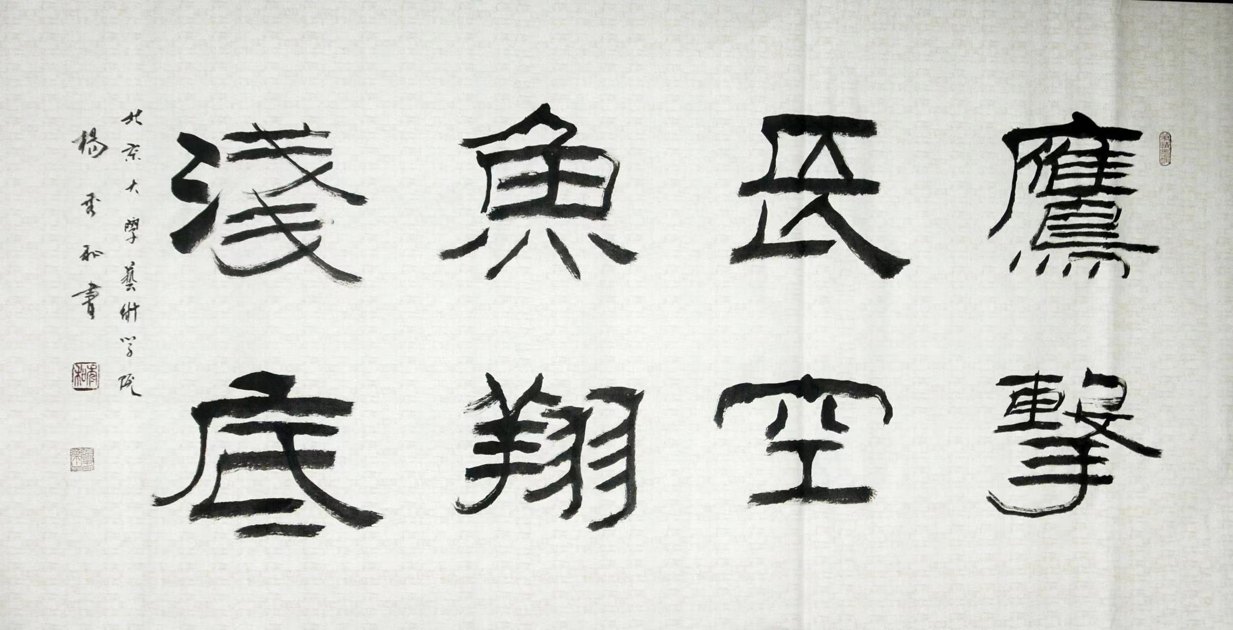杨秀和先生坚持六十年临池不辍,研究历代名家名作,习遍二王、欧、颜、柳、赵诸家精品,楷、行、隶、篆、草五体皆能,以隶书见长。经过长期努力和刻苦钻研,主攻秀气、隽永的汉隶,形成了自己独特的风格,在书法学术方面享有盛誉。其国画以书入画,也有很高水平,功底深厚,属传统功力型书画家。