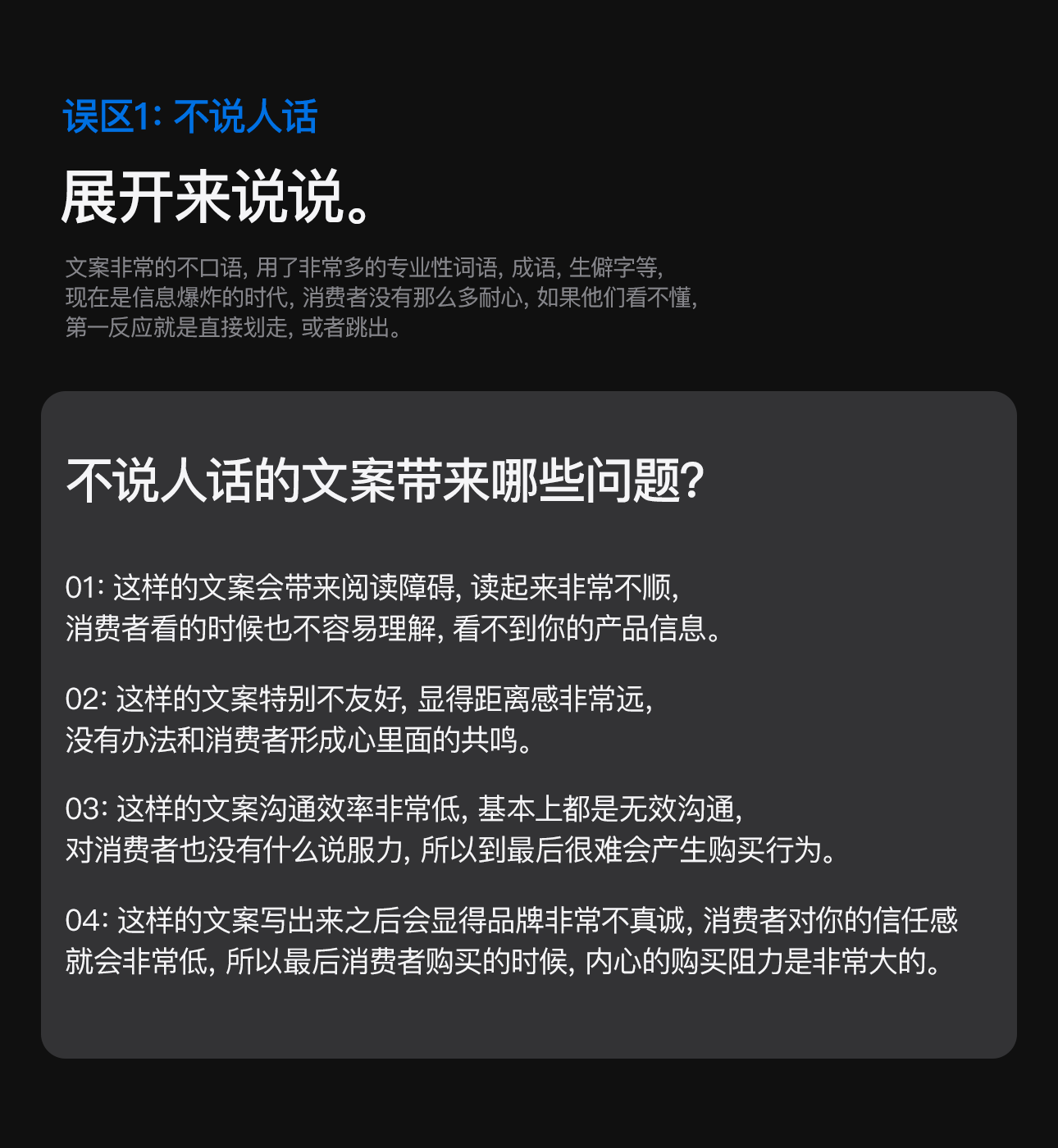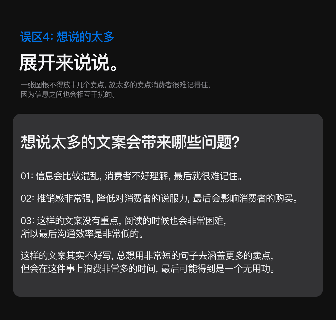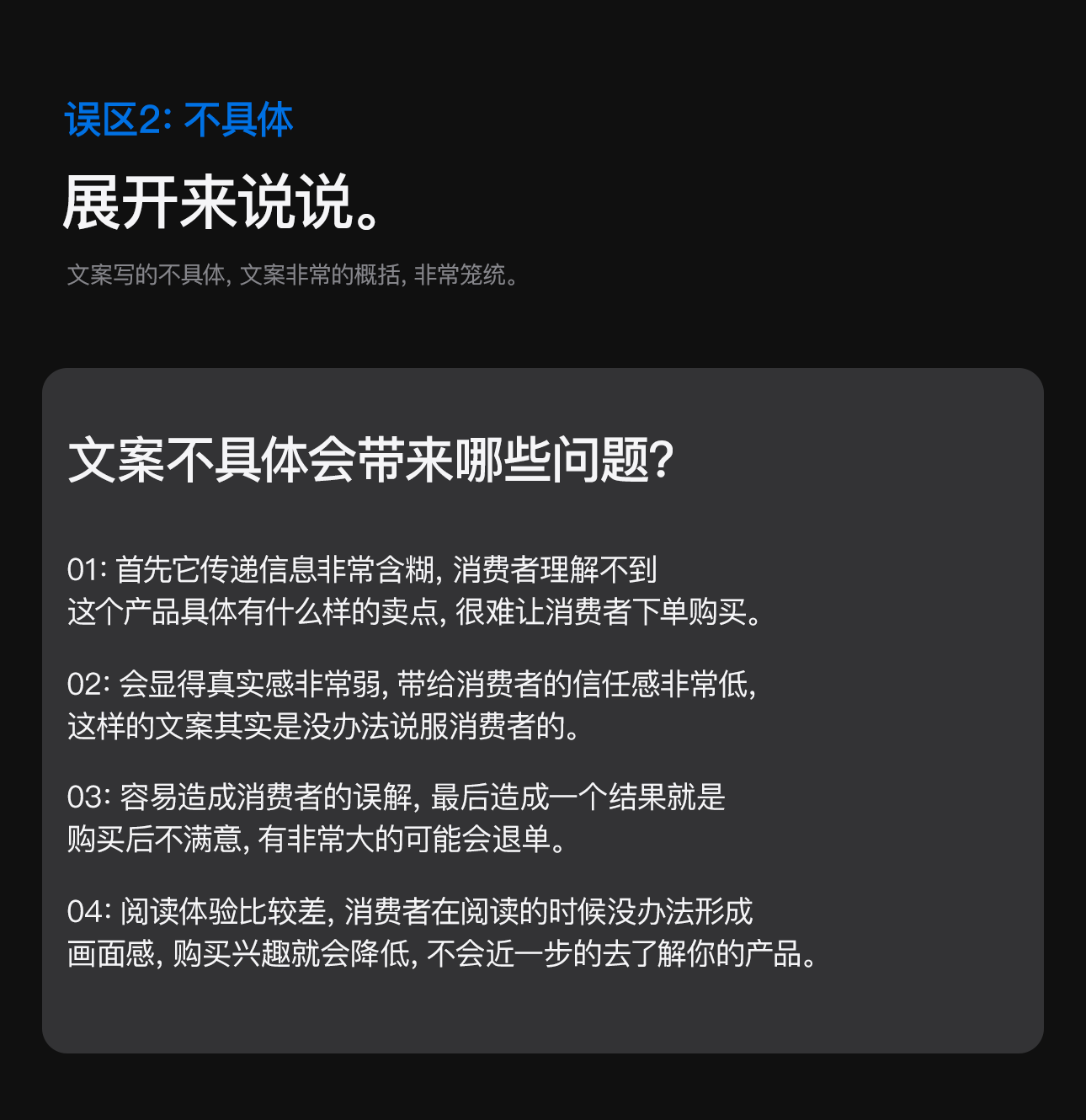 02:会造成你写卖点文案的时候细节非常少,文案非常笼统,没有办法打动人;