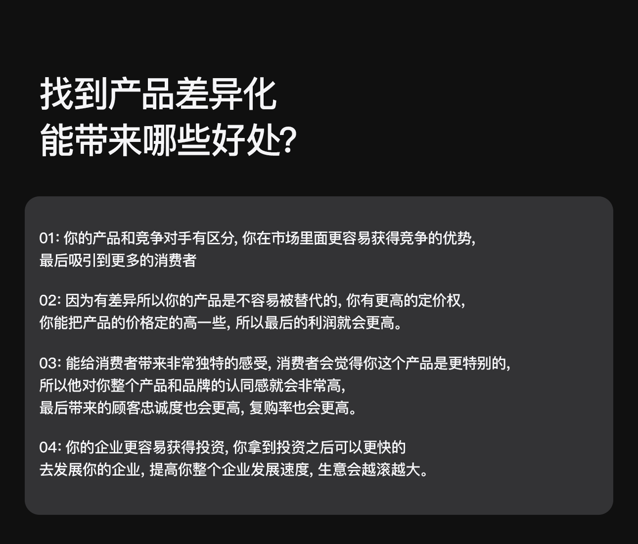 04:好的卖点文案能够让你的产品显得更有价值,方便你提升溢价,把产品卖的更贵,从而获得更高的收益。