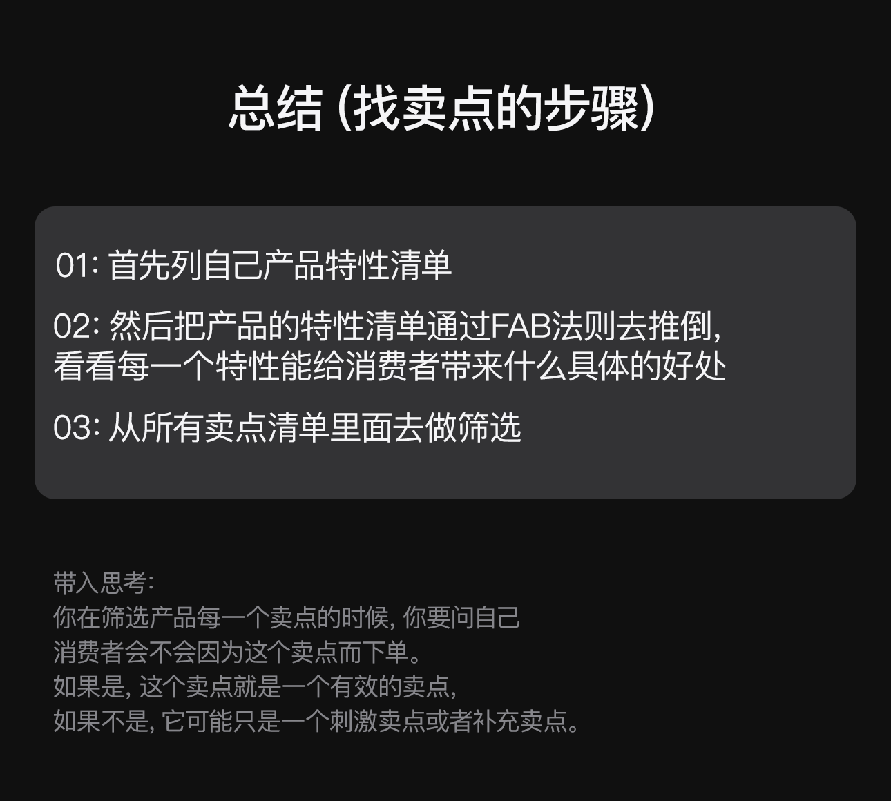01:写卖点文案的时候,首先提炼产品的卖点,提炼产品里面的事实,然后再把事实写成文案。