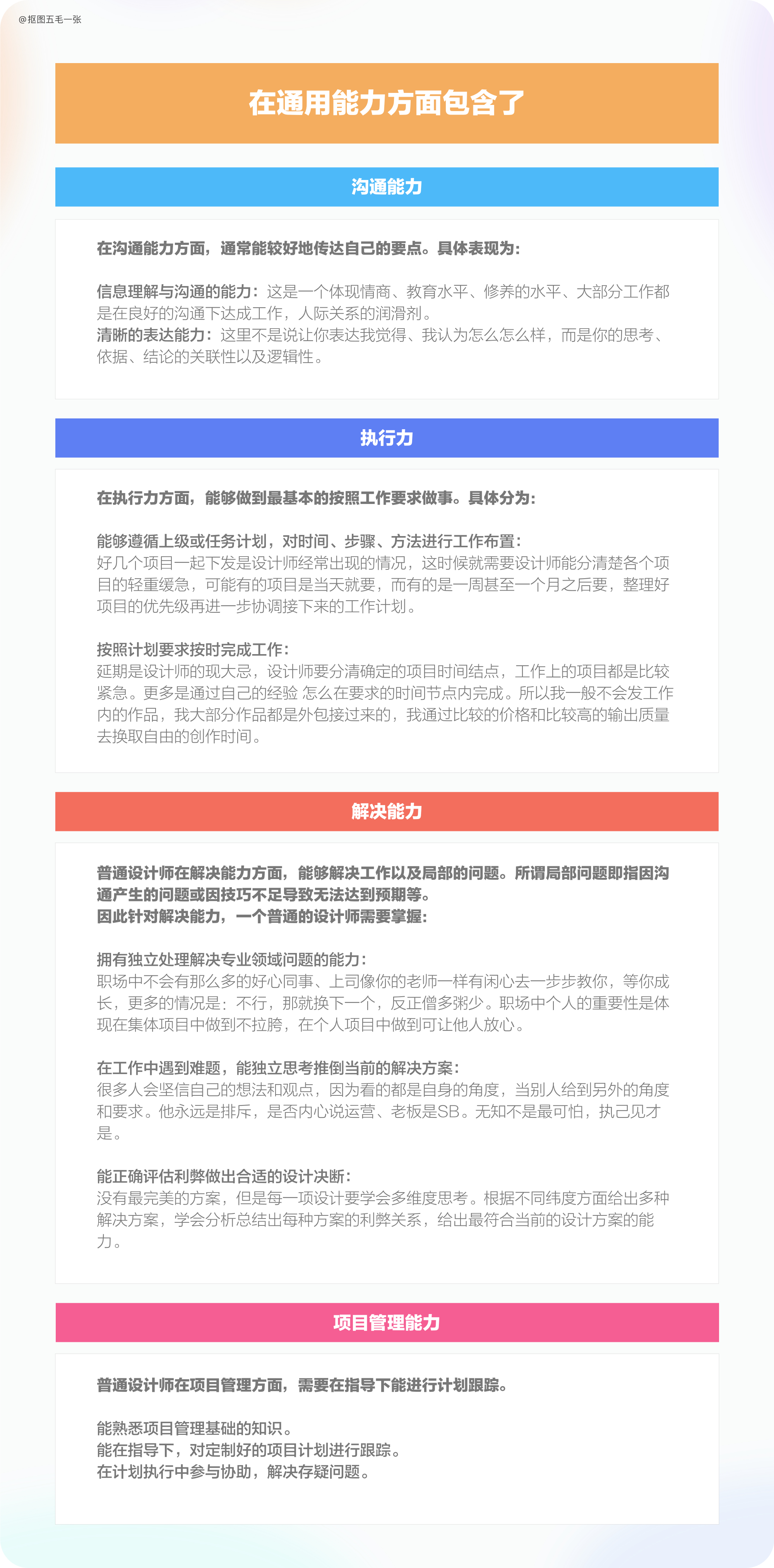 列举了这么多能力,当你都能达到的时候,恭喜你,你已经是一个出色的设计师。