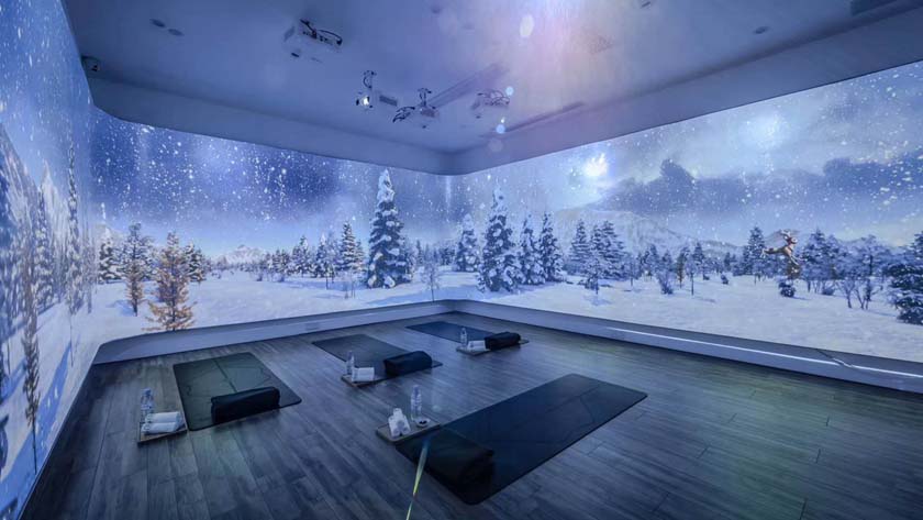 四折幕投影形式是在三折幕基础上增加了一面显示银幕,它在投影表面的平整度和光学特性方面更为精细,能够提供极高的图像质量和观赏体验。这种形式的折幕通常适用于大型舞台、博物馆、艺术画廊等对投影效果要求极高的场所。