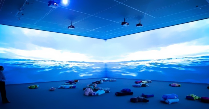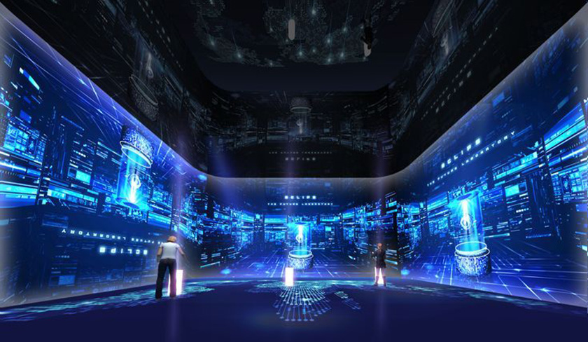 内容展示形式已经变得丰富多样。例如基于投影技术的多媒体创意互动装置,就有折幕投影、球幕投影、桌面投影等。