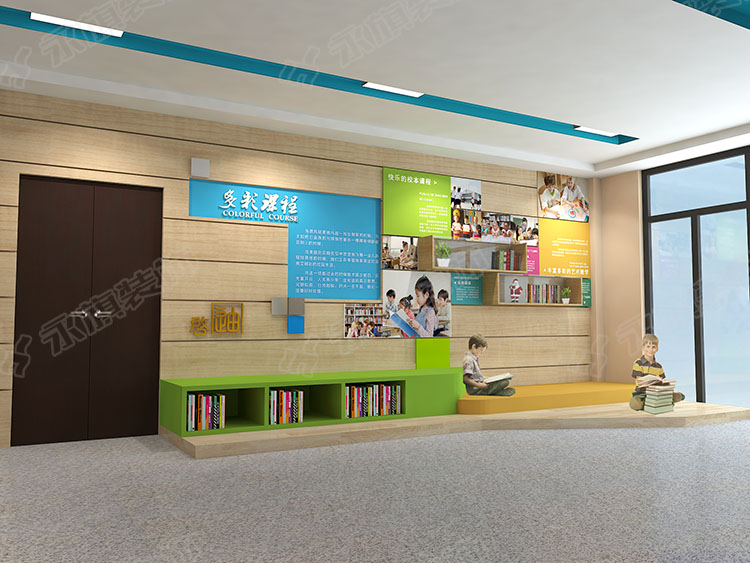 河南校园文化墙设计-图书段,文化长廊的一面墙是图书主题,以书海之旅为主题,氛围小古文、小说、寓言、古诗,将文学知识通过趣味的展现形式,让学生们能潜移默化地感受中华文学的魅力。校园故事墙,以打开书籍为创意点,墙面为平面书籍打开后的呈现展示,在志宏打造一些可以让学生罗走读书的地方,富有创意。