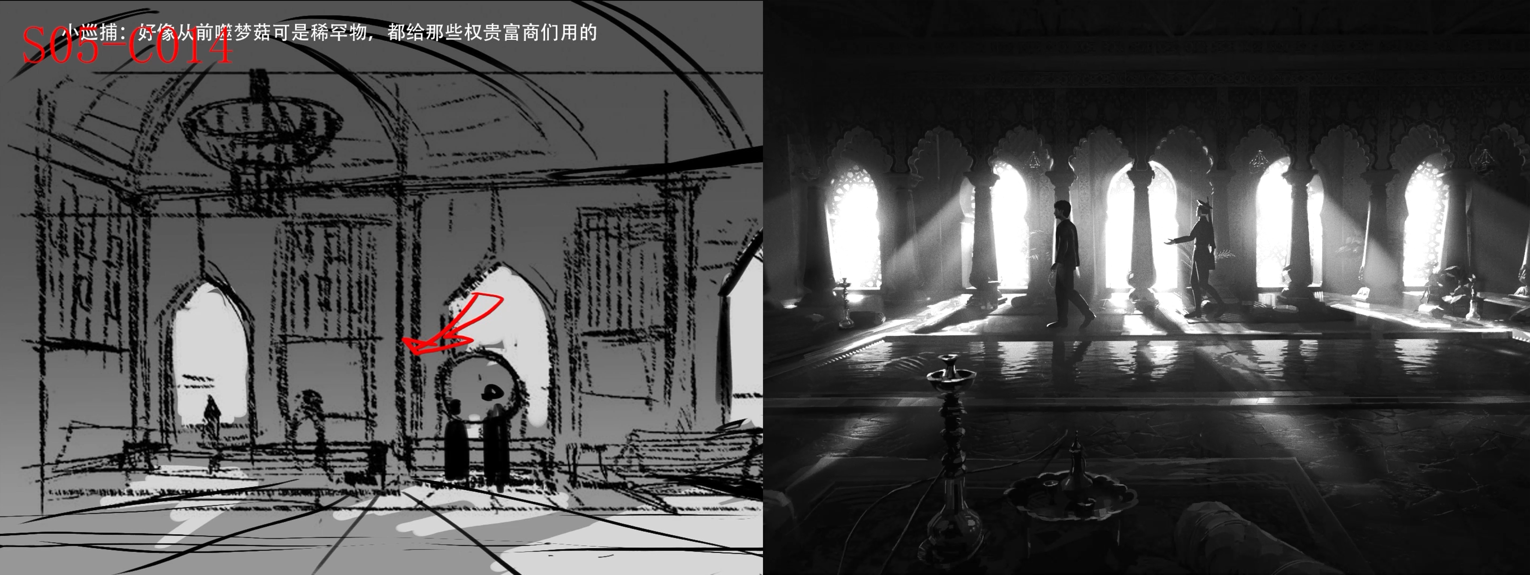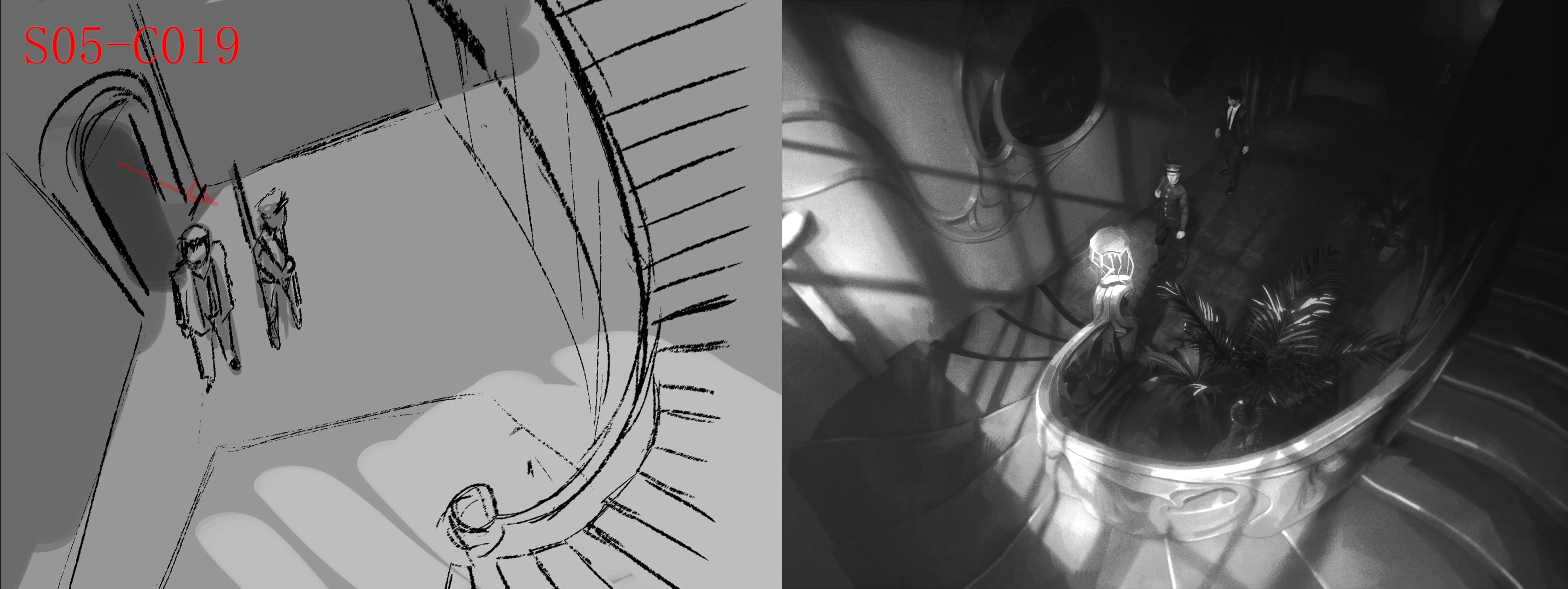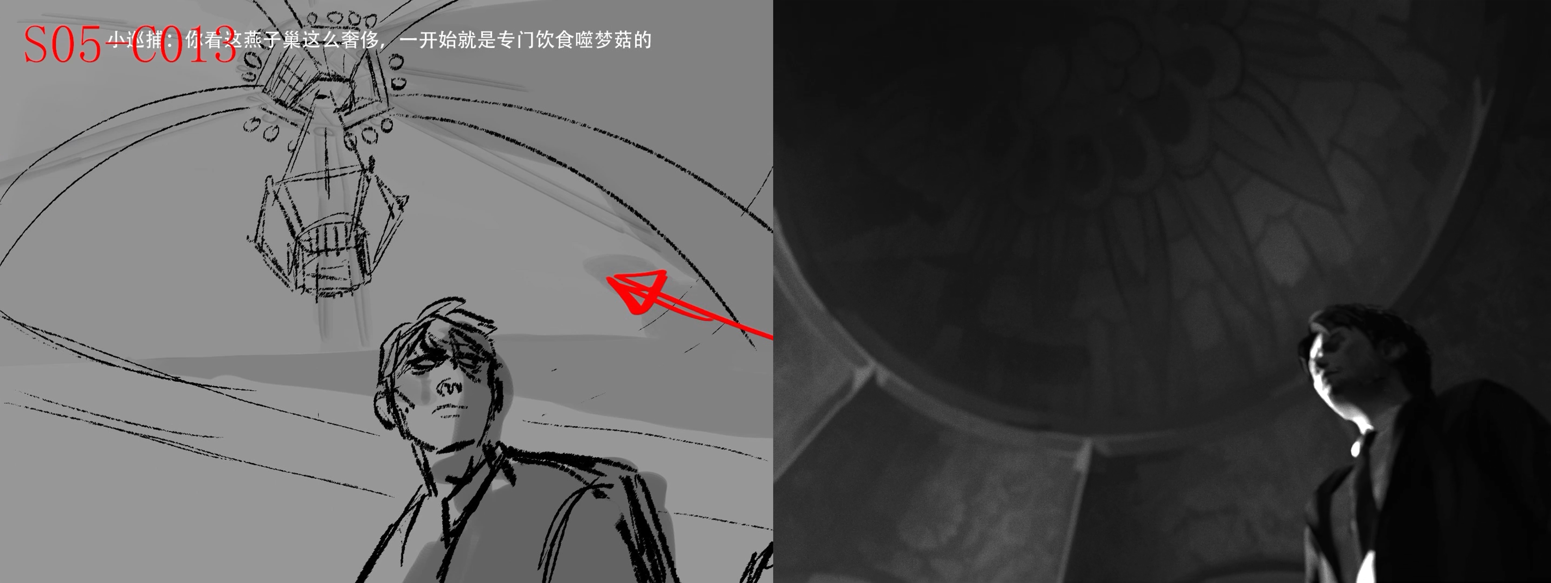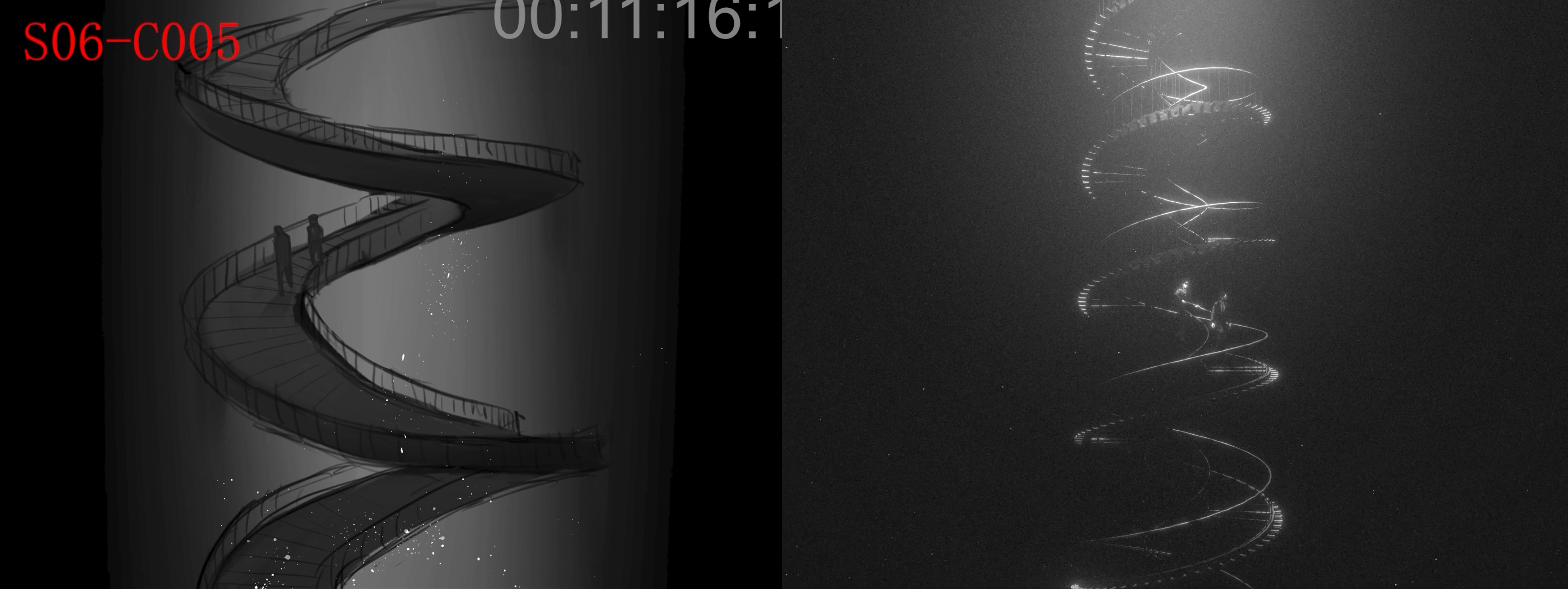 燕子巢内旋转楼梯-分镜与成片画面对比