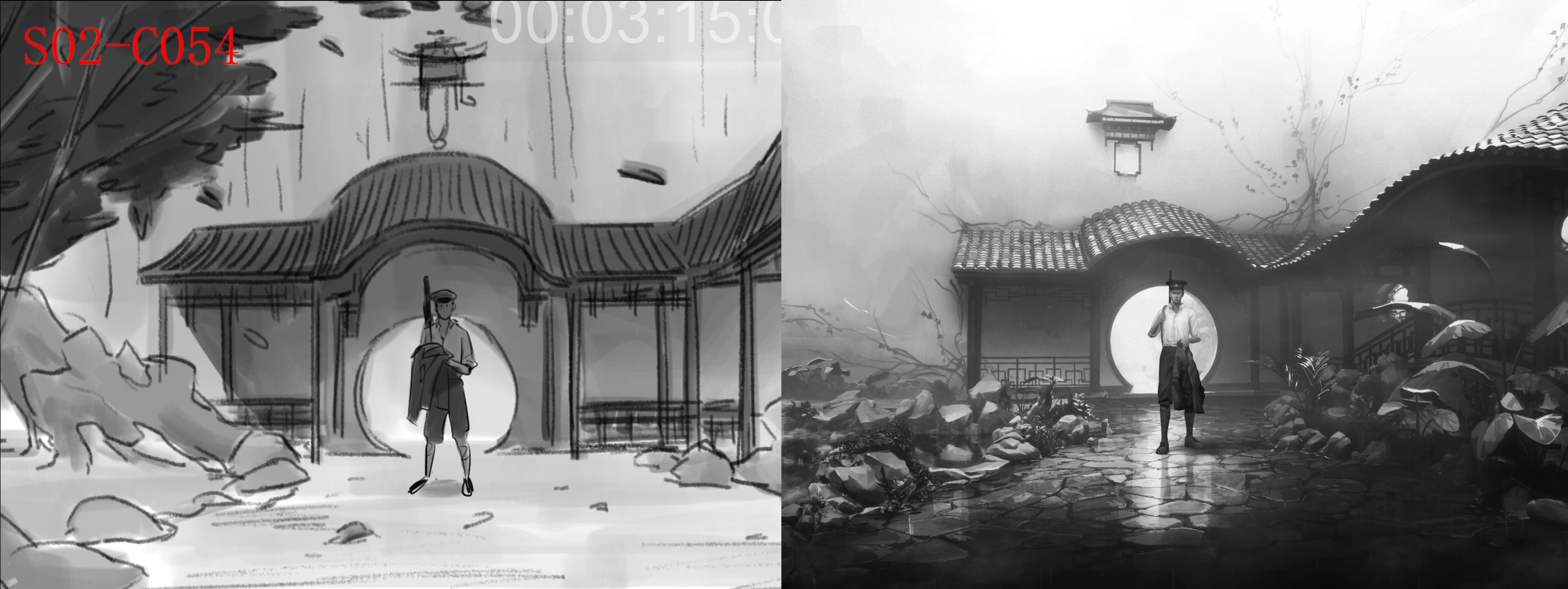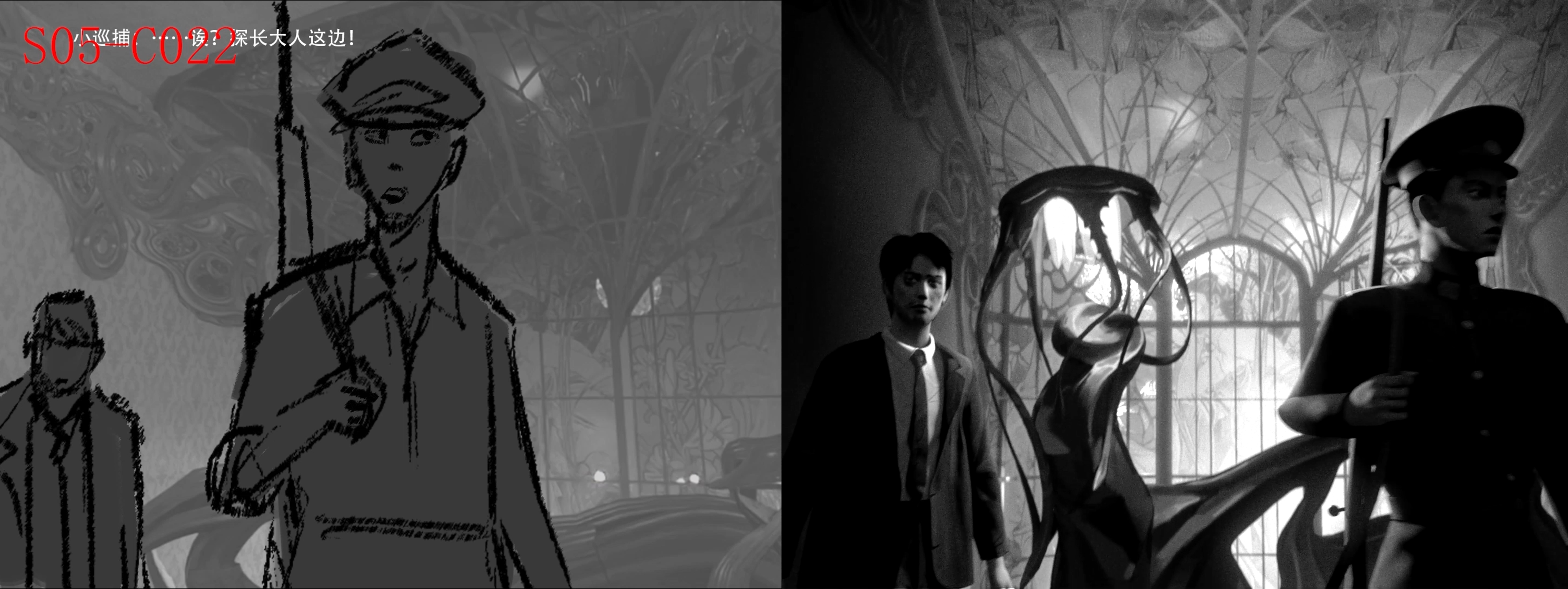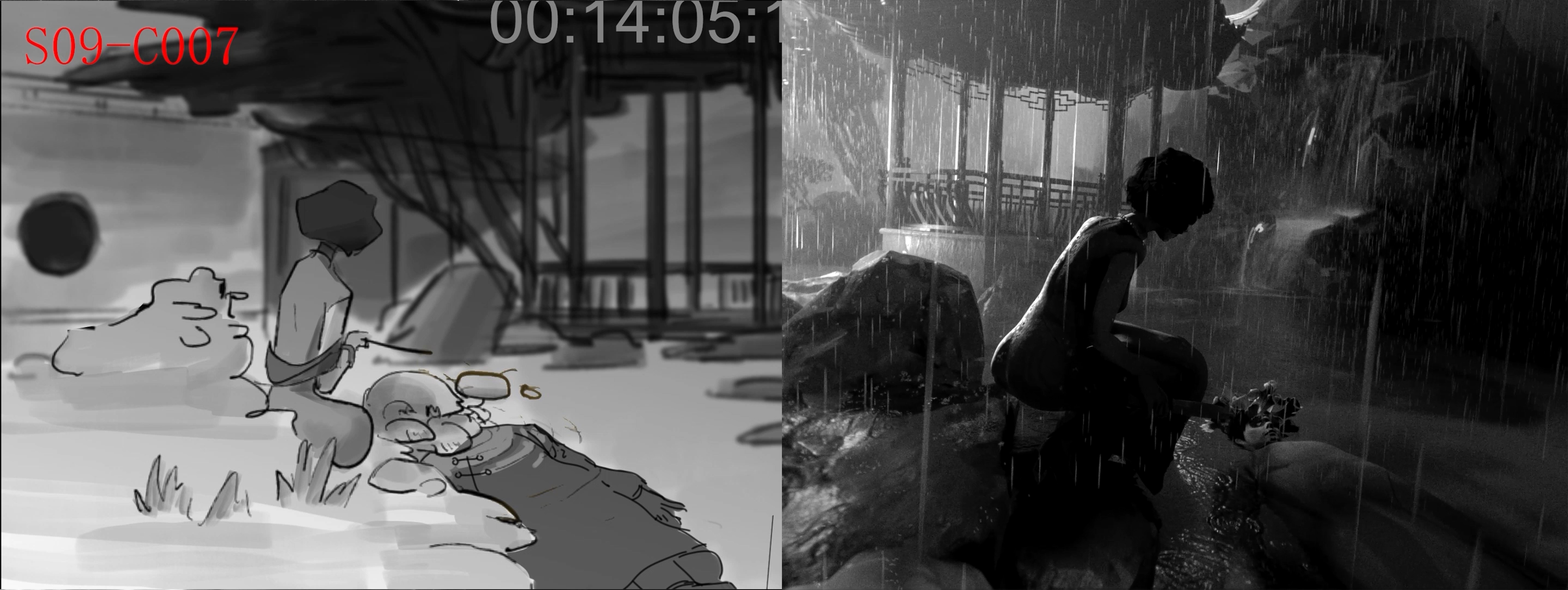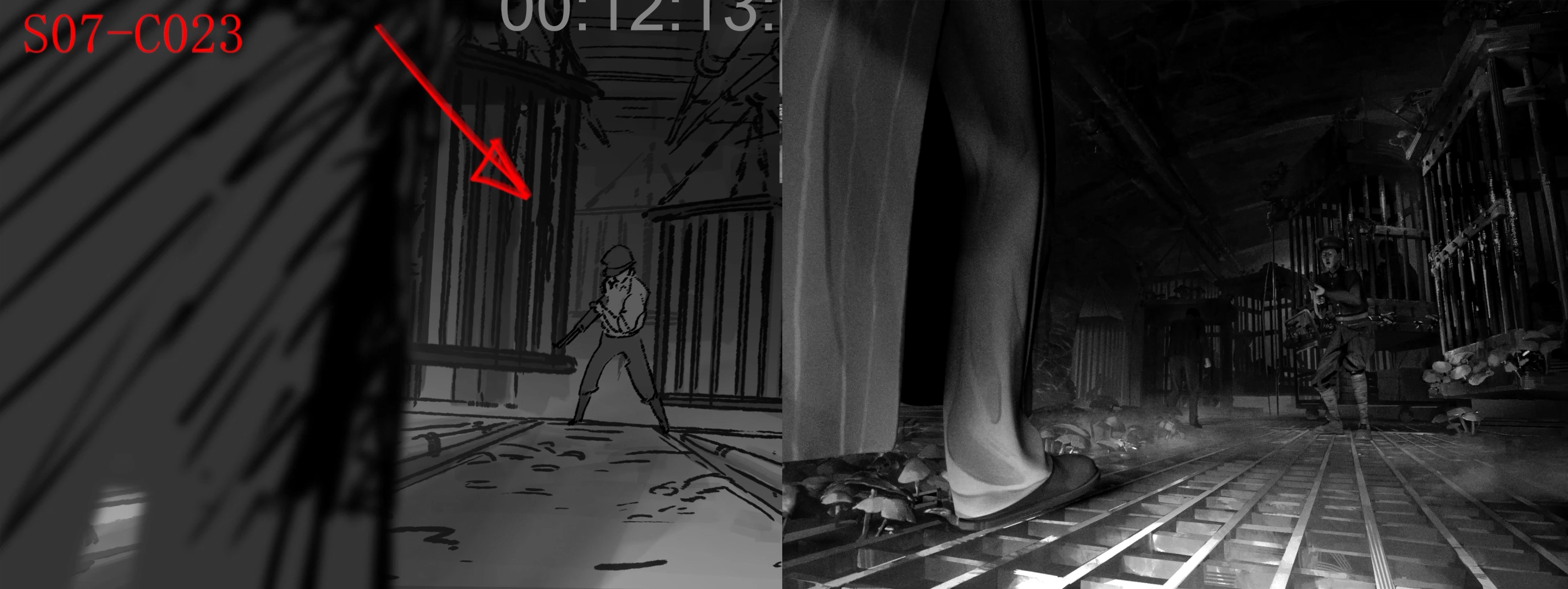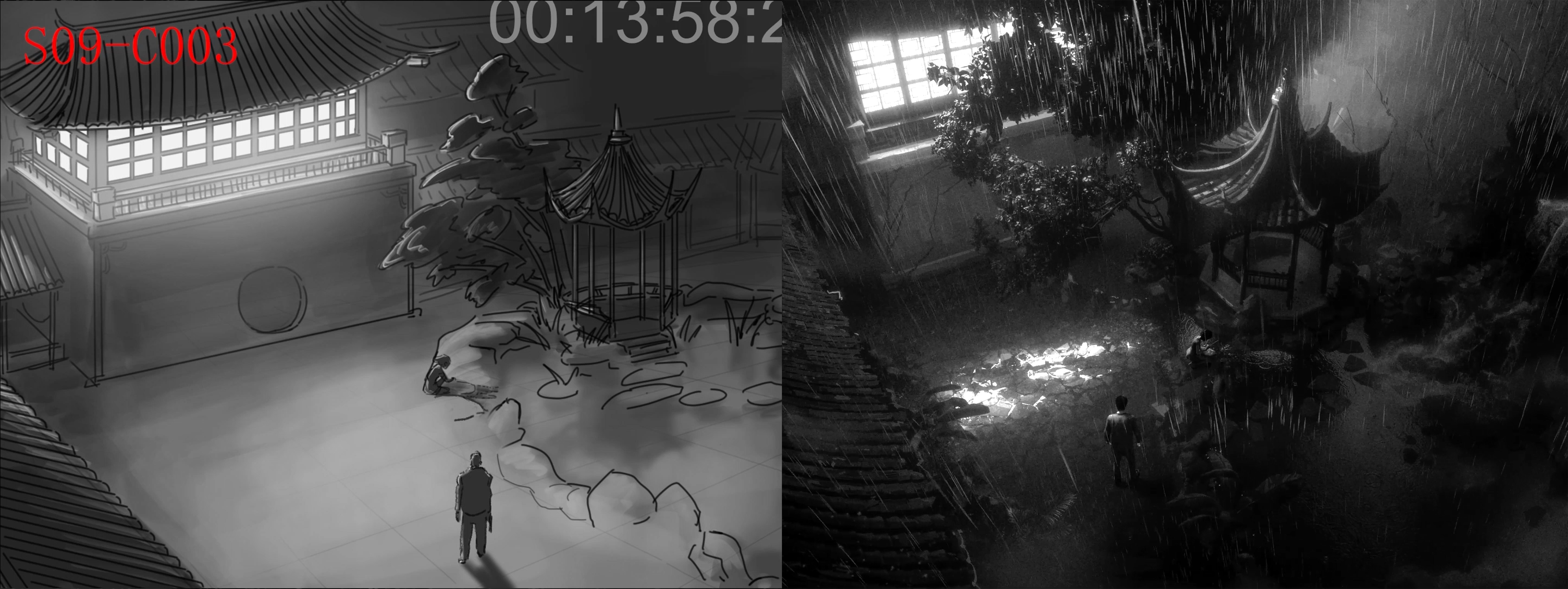燕子巢内旋转楼梯-分镜与成片画面对比