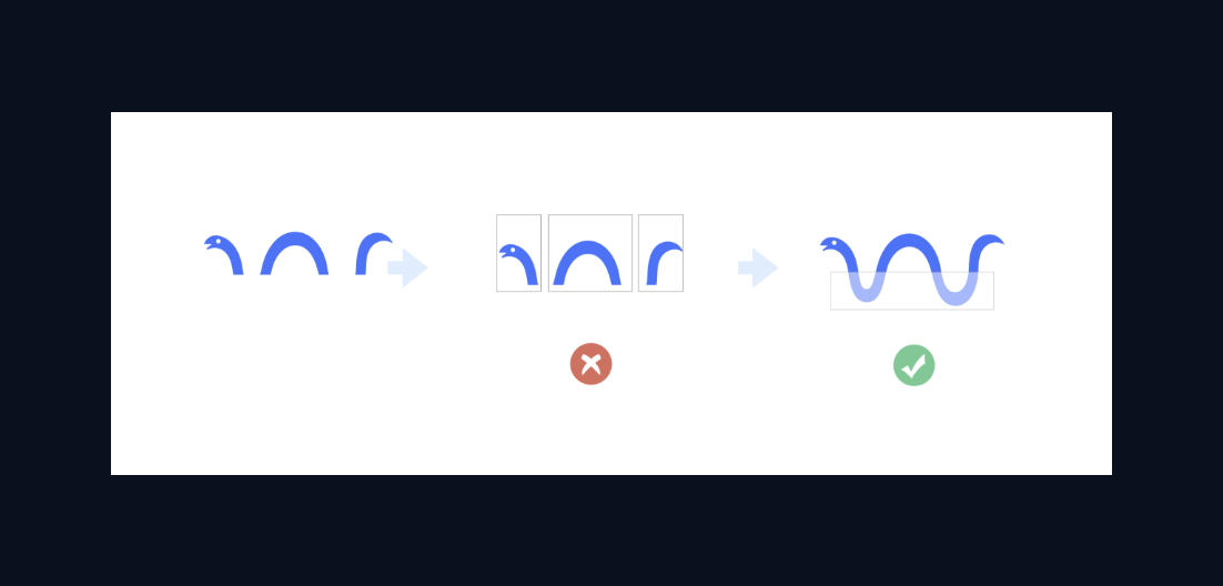 以图为例,对于左一的图形,我们在视觉认知的时候,大概率不会把他按照中间的三段式进行分解,而是会把它看做一条连续的蛇,只不过下方被其他物品所遮挡。