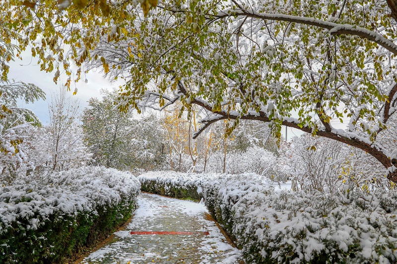 你所在的城市下雪了吗?当初雪落上了树的枝头,枯黄的叶也不甘落后, 岁月静好的美妙,值得每一份期待。初雪是秋日的告别也是冬日的序章,天气愈发寒冷,心中却因初雪而雀跃,时至岁末,崭新的日子在雪中走近。
