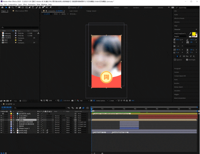 而PAG的“BMP 预合成”导出模式支持所有AE特效,因此完美还原了效果。设计师无需为精心设计的效果无法导出而烦恼,只需要关注视觉效果本身即可。