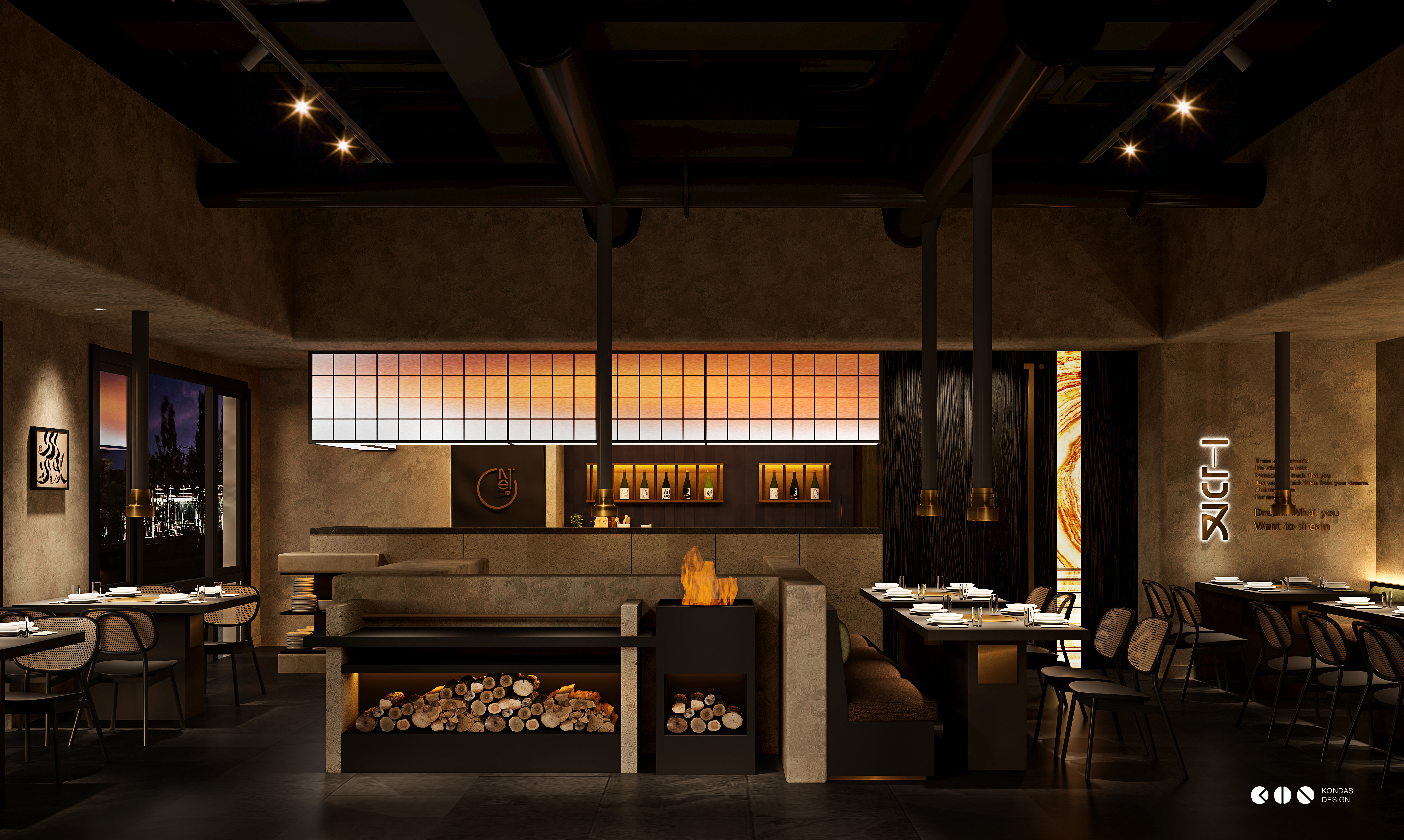 The interior texture paint and wood finishes interweave the independent scene of the barbecue bar. Through the lighting atmosphere, the shop space is more harmonious and self-consistent, eliminating the unique distance and strangeness between products.