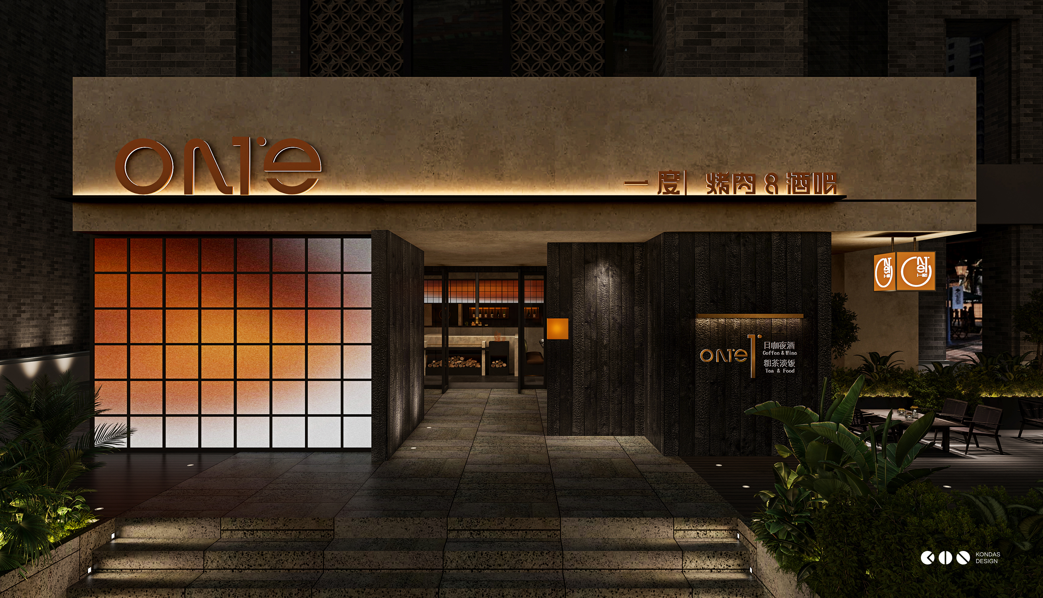此次受委托为1°烤肉酒吧品牌做空间设计,店铺位于重庆融汇温泉里小镇,这里是一个极具休闲娱乐的地方,你可以享受一段放松身心的旅行,也可以邂逅一场巴渝美食。品牌主理人希望烤肉和酒吧这两个品类在经营中相对独立又相融洽,那么如何在空间中让两个场景相融自洽成为设计师的挑战。