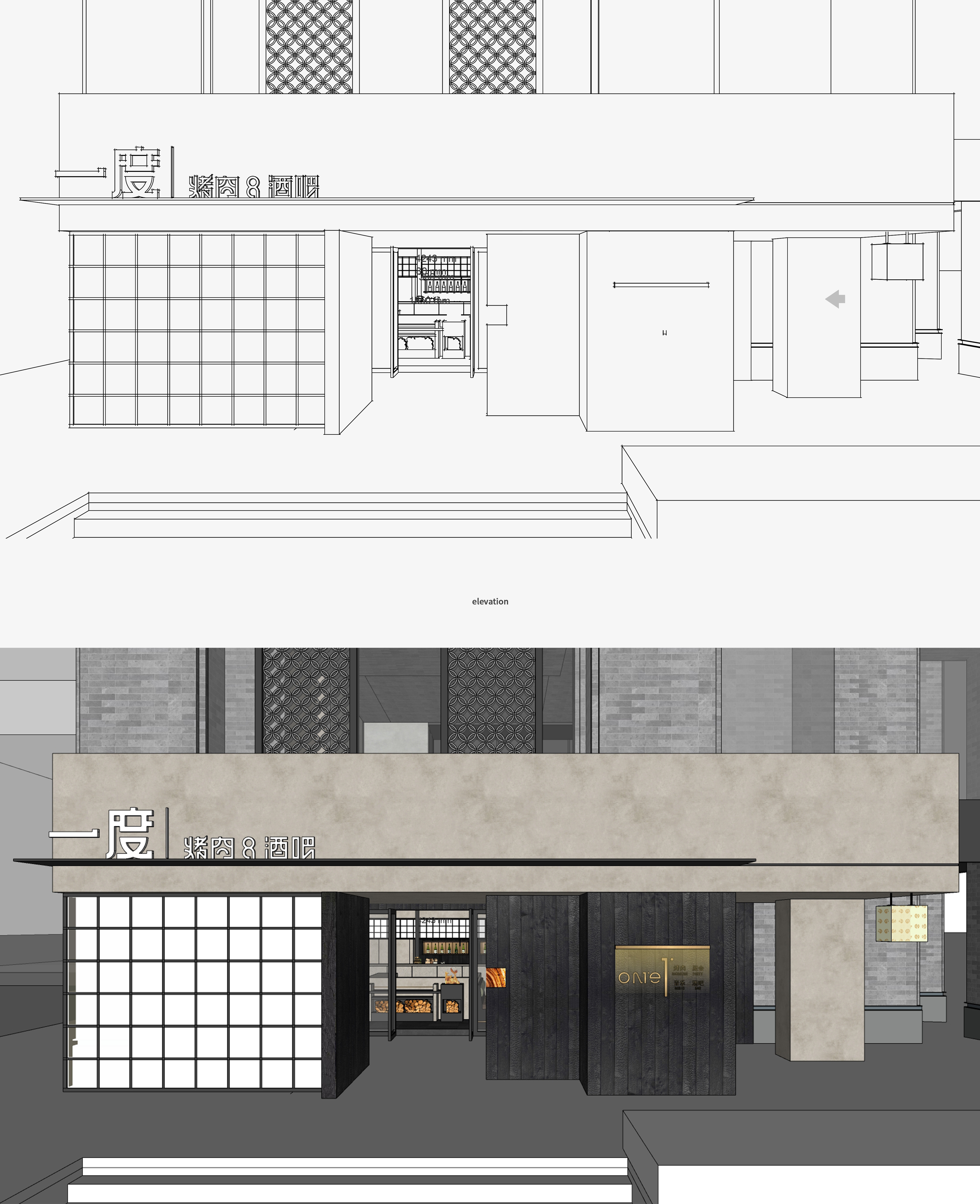 This time I was commissioned to do space design for the brand of 1° Barbecue bar. The shop is located in Ronghui Hot Spring Town, Chongqing. It is a very recreational place, where you can enjoy a relaxing trip and encounter a Bayu cuisine. The owner of the brand hopes that the two categories of barbecue and bar are relatively independent and harmonious in operation, so how to make the two scenes in the space become the challenge of the designer.
