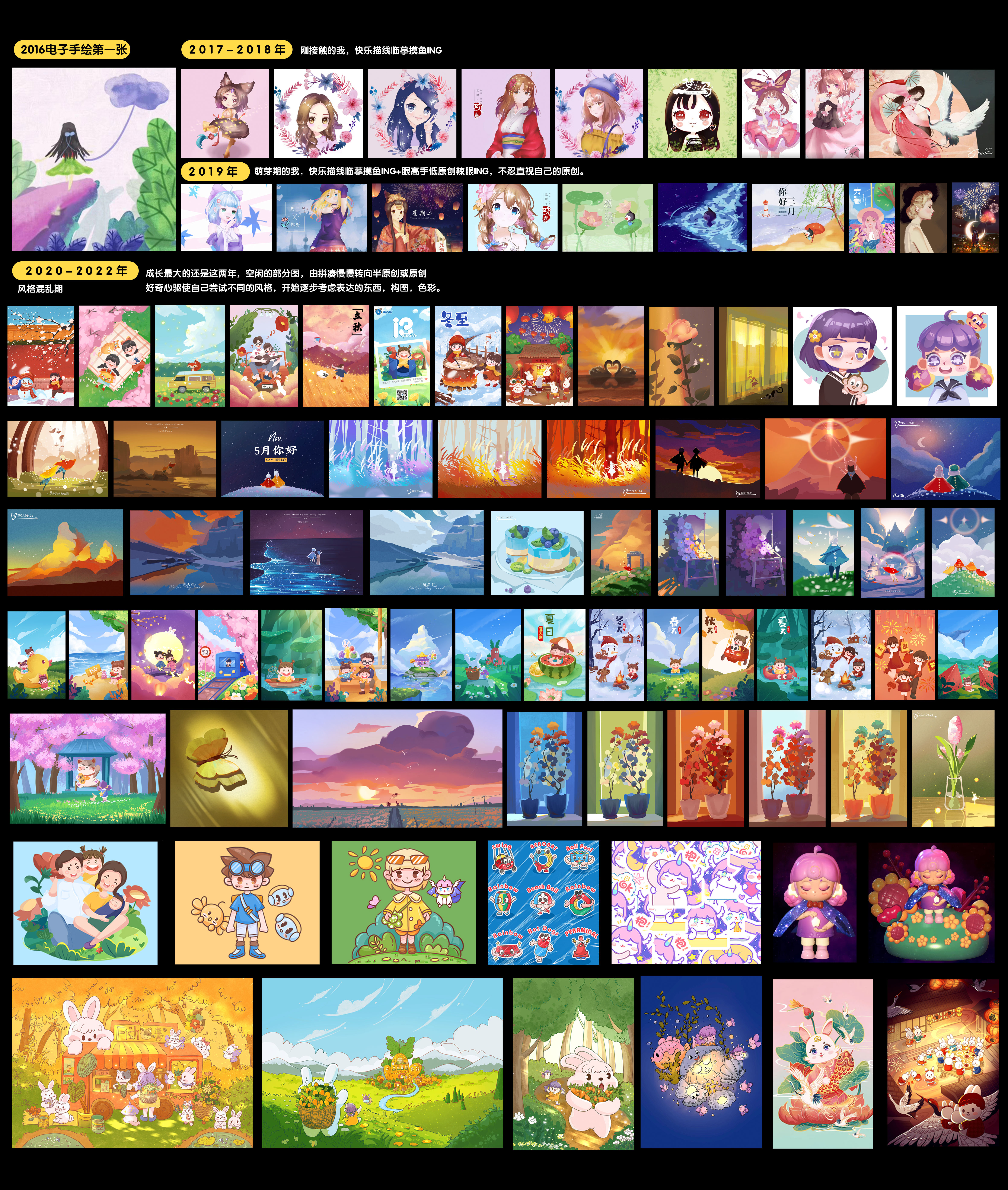 22年的一年,是半原创-原创的过度,会根据自己定的主题去合理找素材,开始思考:主题,构图,色彩,画风。