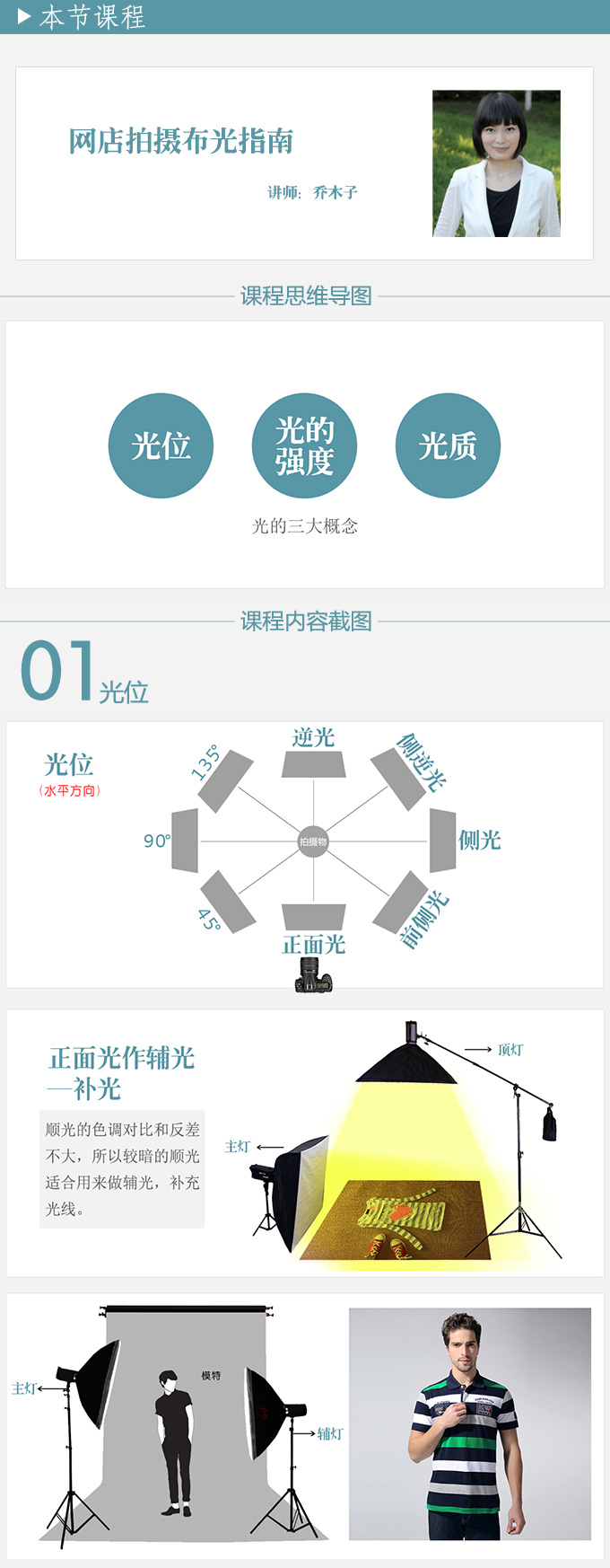 光线总是把握不好,拍不出好照片!拍摄时要如何打光,该遵循哪些原理,一头雾水!木子带你轻松了解布光原理,弄懂弄通光的三大概念,并结合众多实例讲解,教你快速掌握网店拍摄基础布光原理及实战操作。