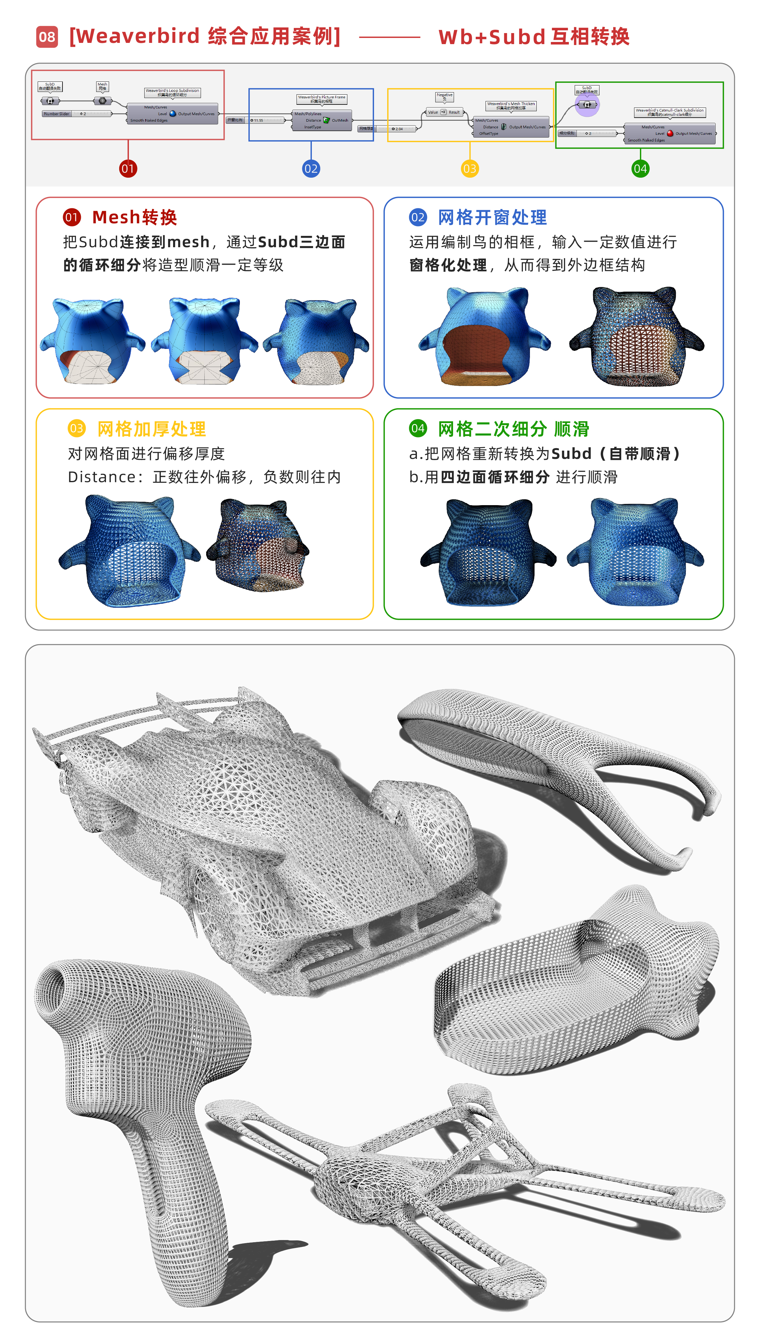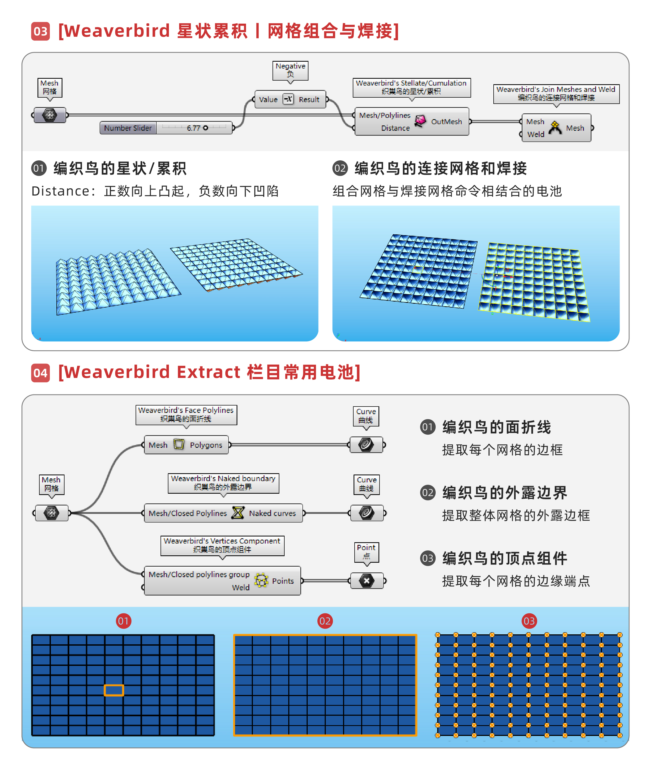3.Weaverbird 星状累积丨网格组合与焊接:
