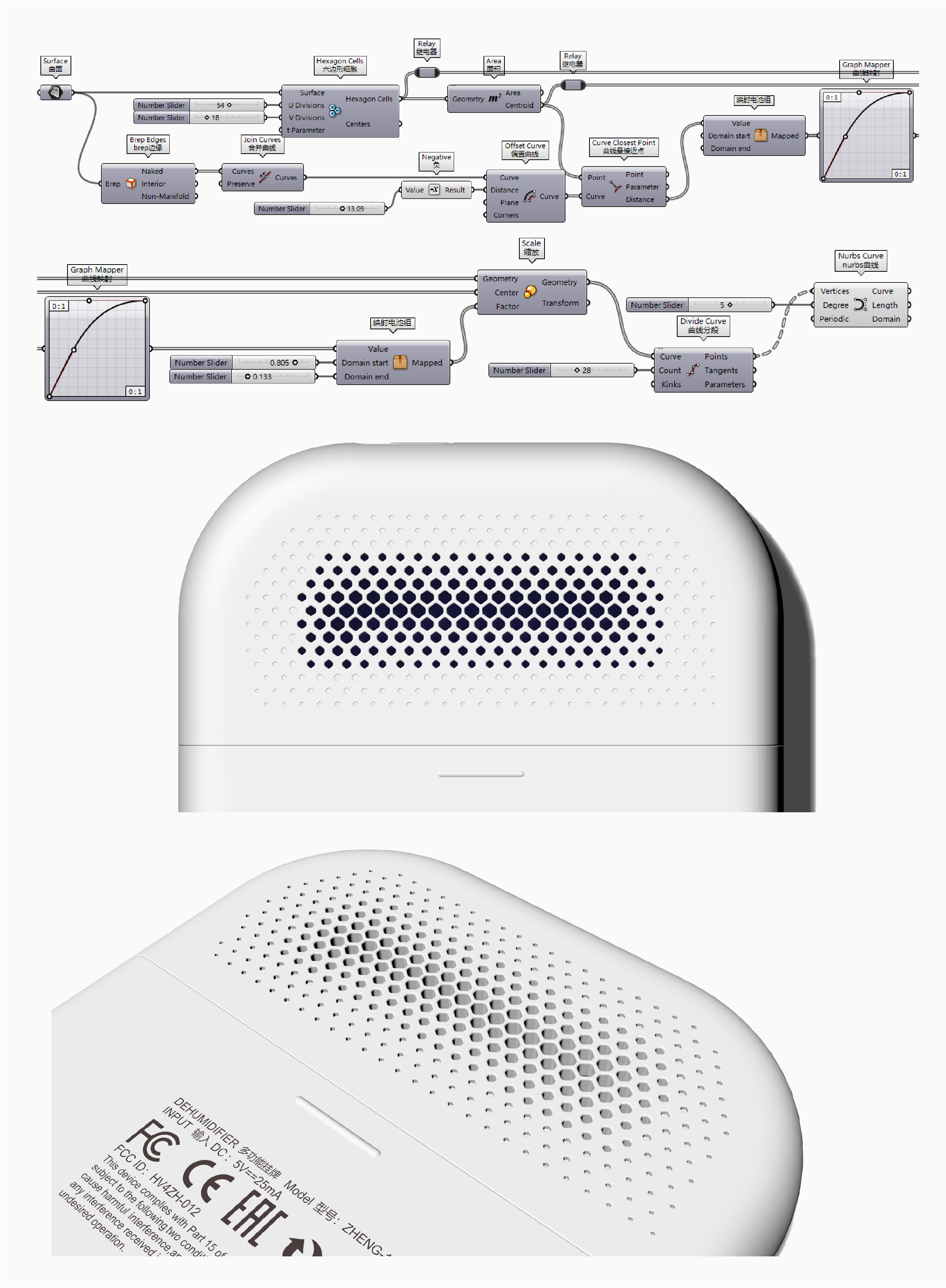 应该很多人应该都见过不少这类参数化孔阵、表皮纹理的优秀产品,参数化设计应用在产品上给人呈现一种科技、高级的感觉。在日常生活中,最常见的应用案例有:音响、加湿器、除湿器、暖风机、烘干器等家电数码产品。