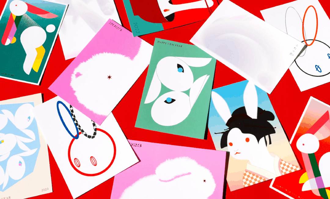 日本著名平面设计公司DRAFT旗下品牌D-BROS,推出团队内6名平面设计师的精选之作,不刻意喧宾夺主也不强调跨年氛围,运用特色、烫金或凸板等印刷的技法,带来这系列的兔年贺卡。