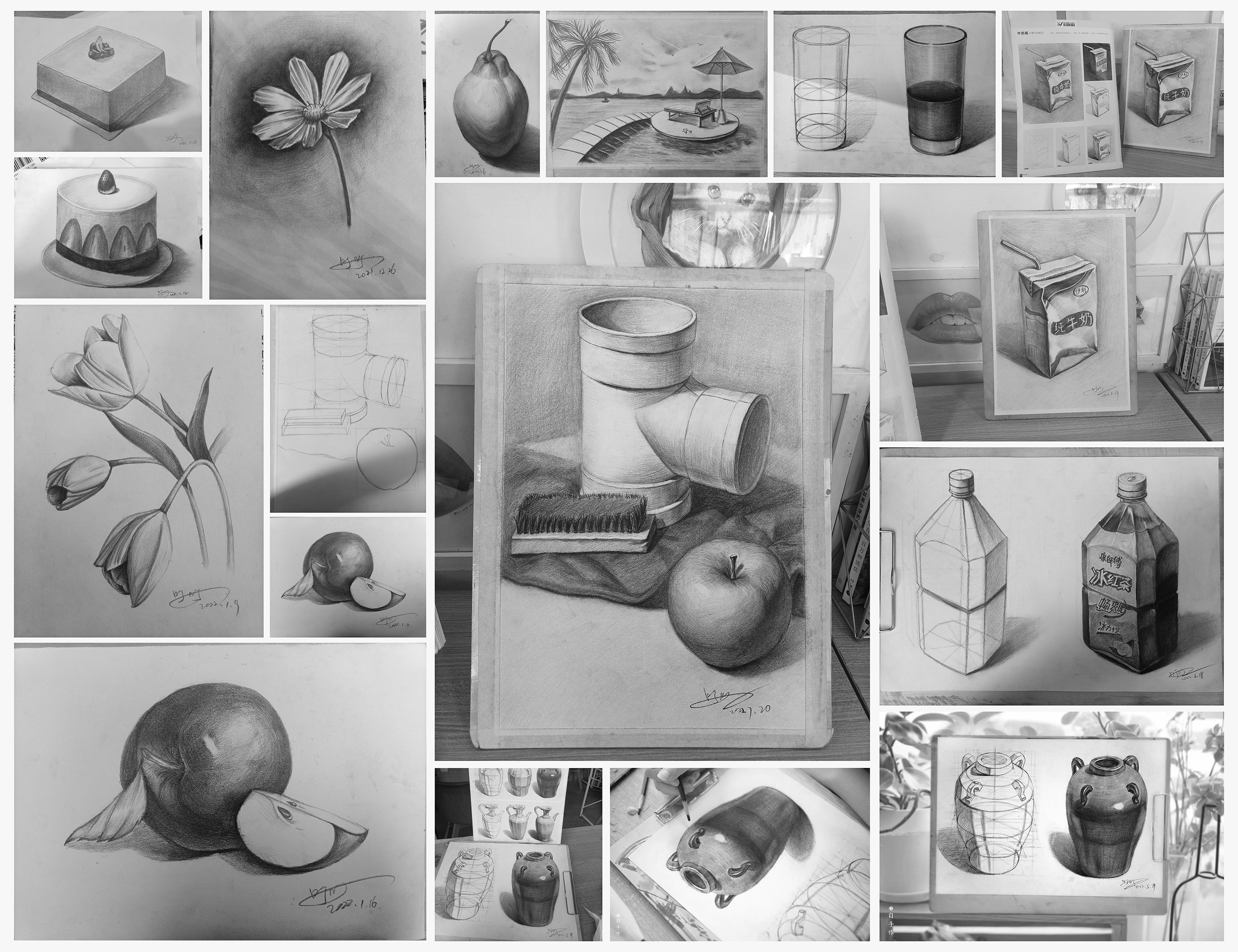 所以我果断找那位美术老师报名学习,经过半年的不间断训练,我画出了下面这些作业。