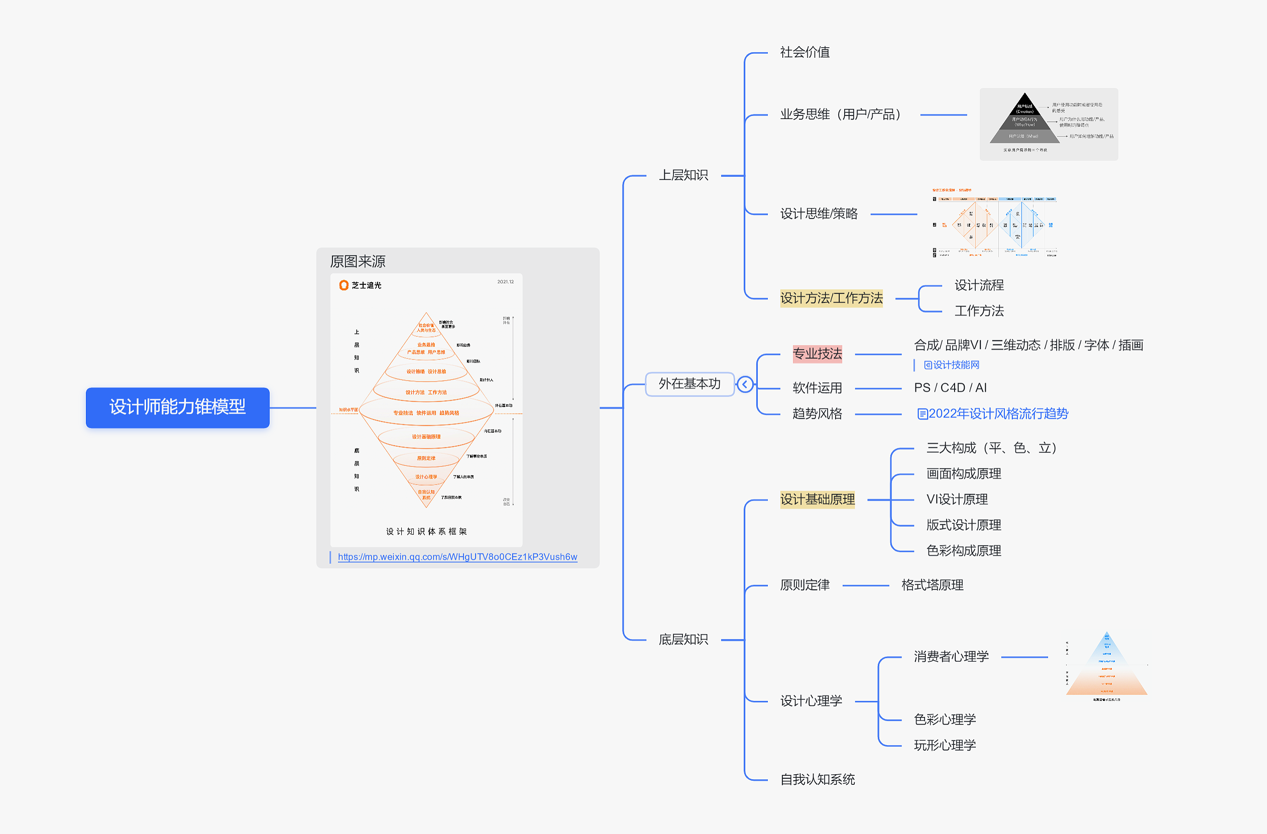 学习目的也正是为了强化设计思维,而提升设计思维的前提就是得先提升自我认知——你得知道大脑是怎么工作的,知识的本质是什么,这个世界运行的底层规律是什么,人性的弱点是什么等等,也就是要提升自己的见识,这个东西没有别的办法,只有靠积累、多看多学。
