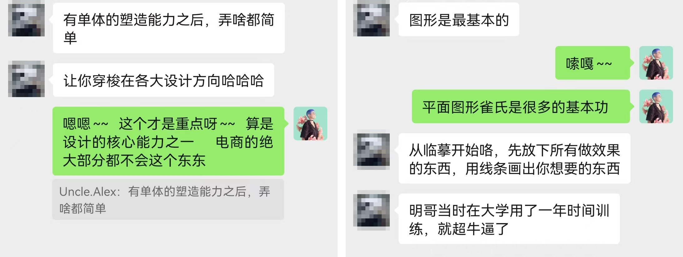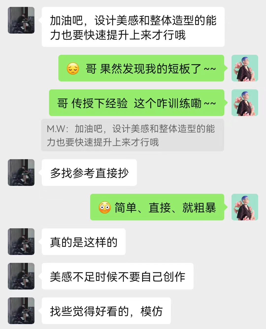 这恰好又是我一直存在的问题,明哥也帮我指出短板——设计美感与整体造型能力不足,并贴心地告诉我具体的学习方法。