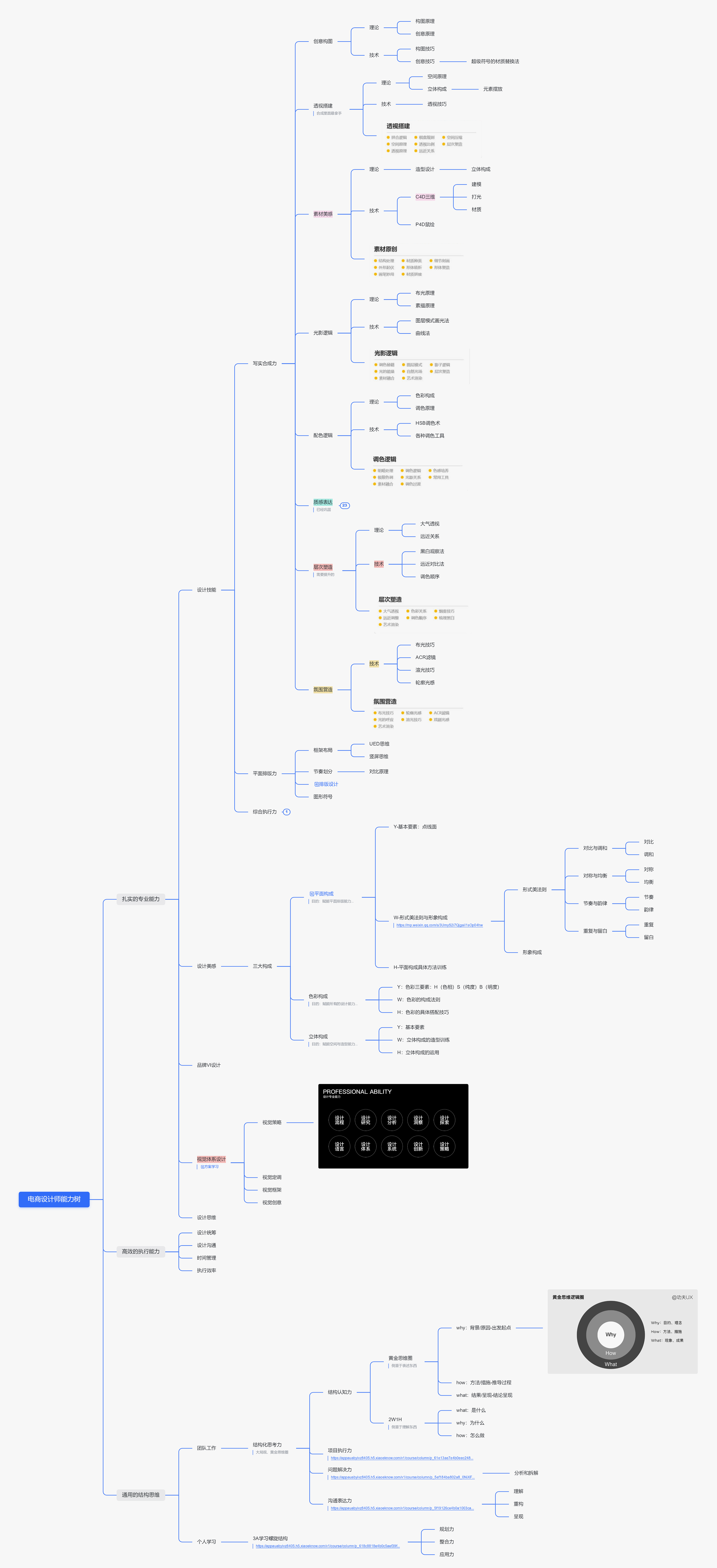在他的帮助下,我梳理出了一份“电商设计师能力树”模型图。(请点击查看大图)