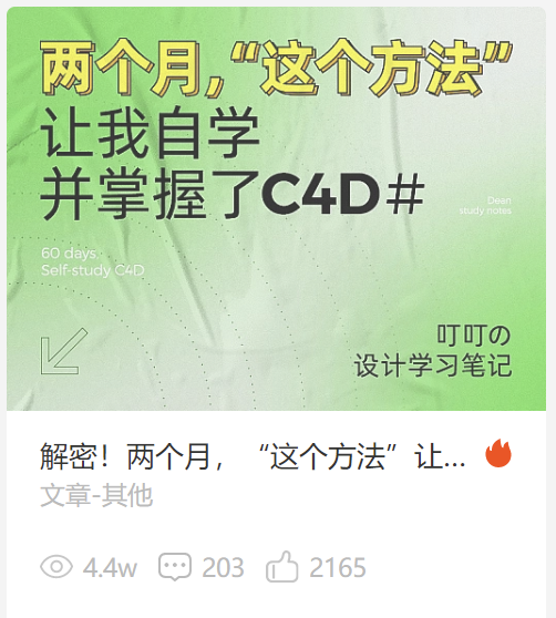 然后我还把学习心得写成文章发布在了站酷,并有幸拿到了首推,您如果感兴趣的话,可以复制这个链接去看看:https://www.zcool.com.cn/article/ZMTQ0NTc2NA==.html