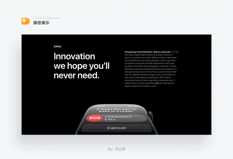 值得注意的是,苹果对于这个系列的手表并没有过多的动画展示,因为相比于Ultra系列,它并没有多少创新的卖点,这说明苹果对于动画的运用是为了帮助新品及新功能卖点迅速打入消费者心智中。
