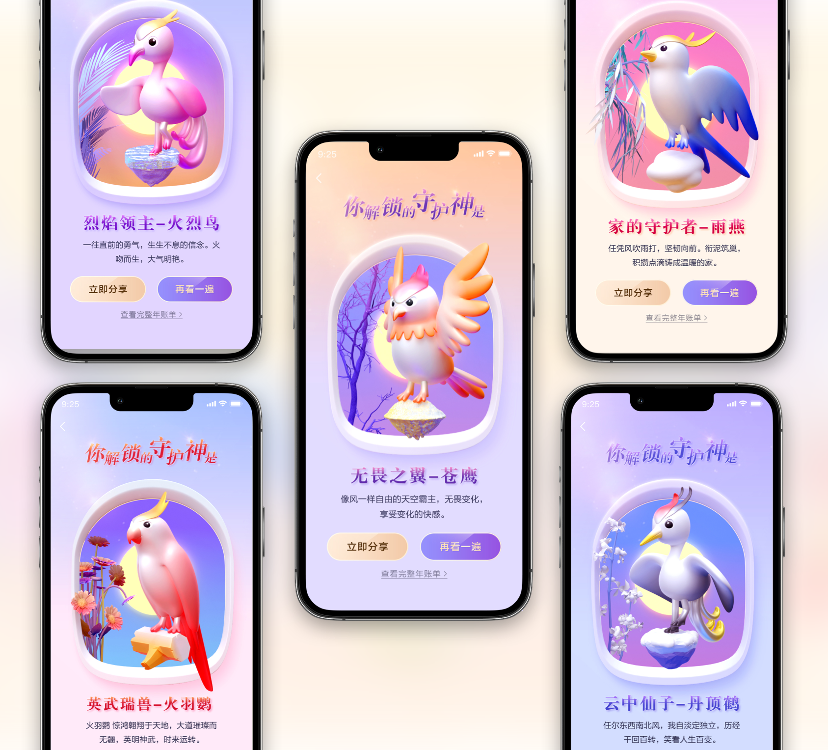 在账单的终点,灵鸟化成彩蛋,敲开解锁2023守护神。这次我们一共设计了5种不同的结果。