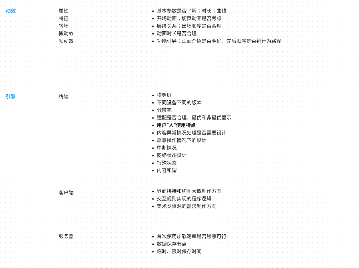 游戏UX设计与产品UX设计同源,但产品目前UX体系成熟且研究较多,游戏行业目前存在UX设计分工不明确,且经常被项目各方认为是UI设计,确实令人无奈。分享一些平时用于具体方案设计的“交互自查表”,仅仅手机游戏UX设计的平时工作内容