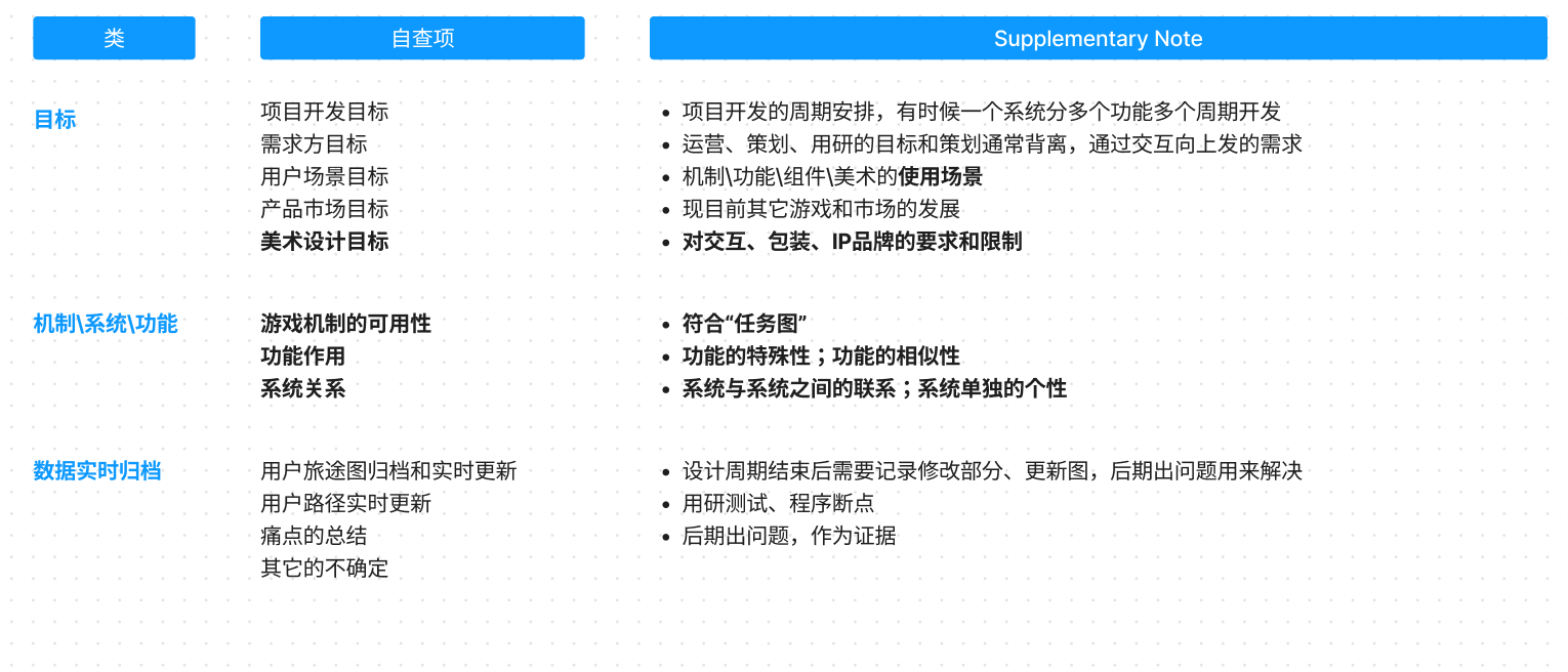 游戏UX&交互设计《阶段自查表》