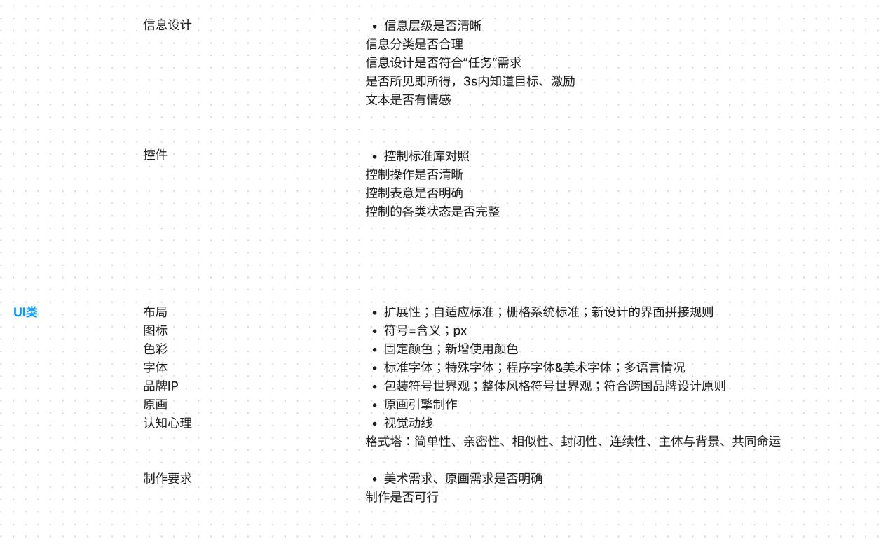 题外话:卡尔·T. 乌利齐 在《产品设计与开发》中,强调和详细说明过产品开发周期中阶段小结的重要性和必要性,我非常赞同此观点,所以在工作中将游戏UX设计分为几个阶段,并对每个阶段进行小结和反省。以下是截止2022/10月的自查表内容,仅供同行交流使用。