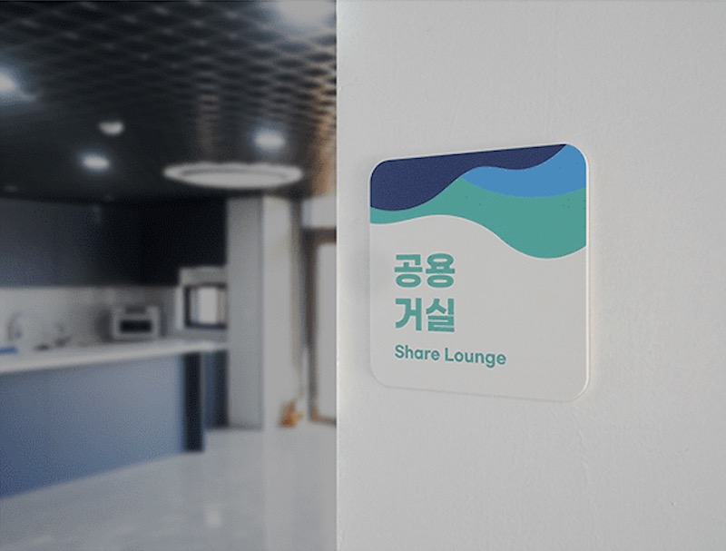 CO STAY青年公寓原名为龟屋5号,为了改善外部形象,KUNST设计公司以“CO STAY”为名开发了品牌,采用了代表泗川市象征意义的颜色,传达了天空和海洋的特征。将海浪元素融入到logo和标牌中,打造了具有品牌感和归属感的住宅空间。
