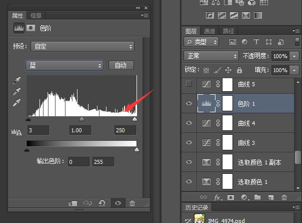 接下来新建一个色阶图层,选取蓝色给图片加些蓝色!