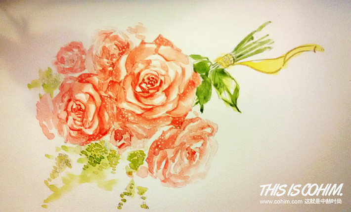 A:其实我之前画的是水彩作品。在水彩的画法中,在调色和笔触方面,调色不要太“死”,笔墨中要有细微的色彩变化,还要利用笔中所含水分的多少使色彩有深浅变化。表现花卉的质感必须仔细地比较花、枝、叶之间的色调特征,把冷调、暖调或中间色调区别开来,把握好高光与反光,争取把最亮、最暗、最冷、最暖的色调以及变化与过渡恰到好处的表现出来。我相信,这样一幅作品仅能够非常详细的把你的设计思路为客户呈现出来。