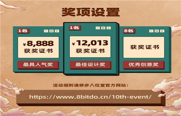 根据活动计划,八位堂已于3月15日完成初评,3月16日开始网络投票,截止日期3月30日,3月31日公示最终结果。届时,将会评选出最佳设计奖一名、最具人气奖一名、优秀创意奖八名,并为获奖者提供了丰厚的奖励。