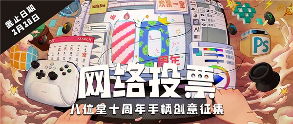 为了纪念八位堂(8BitDo)品牌成立10周年,2月10日八位堂启动了“欢聚一堂”十周年征集投稿活动,目前入围作品正在主办方官方网站及社交媒体进行展示。大家可以登录八位堂(8BitDo)官方网站,也可以通过八位堂公众号、微博相应的活动入口链接,进入专属页面,为你喜欢的作品投上宝贵一票。