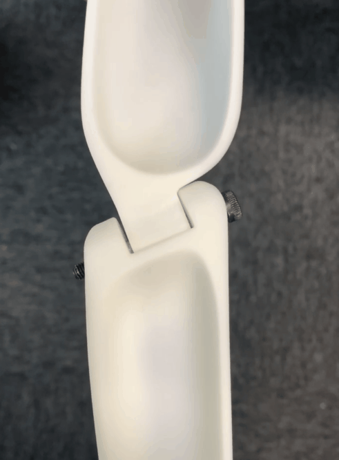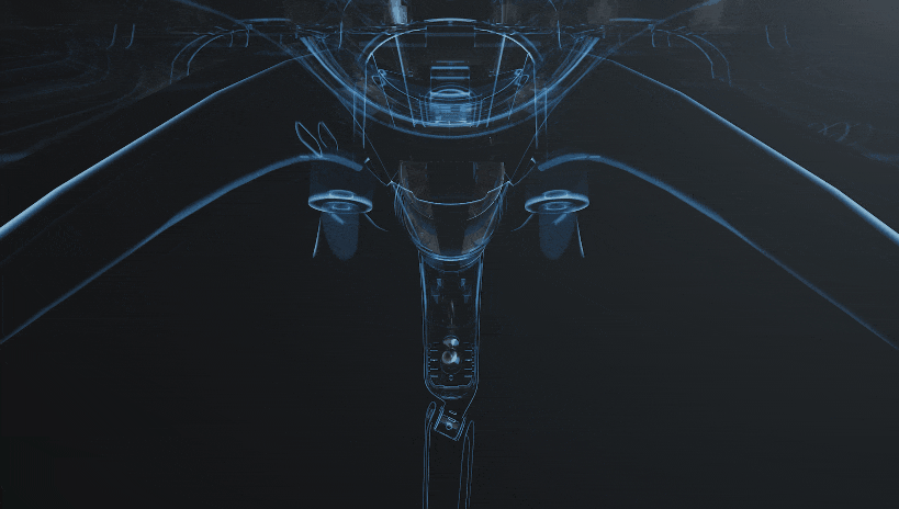 为了实现折叠体积的最小化,需要将旋转轴进行倾斜设计,最终经过多次模型优化调试,将倾斜的旋转轴融入机身流畅的曲线造型中。