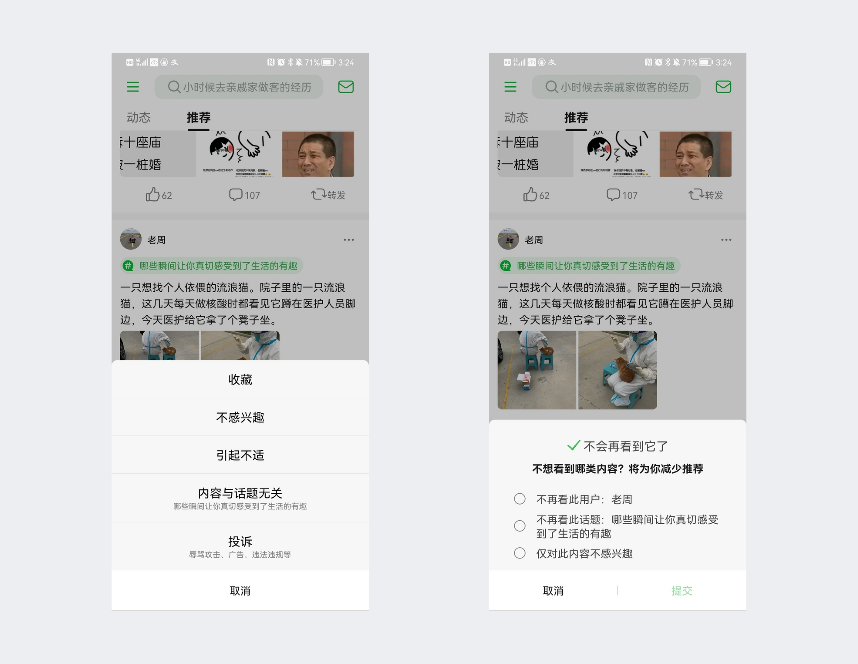 App在大数据算法的加持下,能够根据用户的喜好和兴趣去推荐内容。但是也有失算的情况,因此如今许多app都有反馈功能去帮助算法筛选过滤掉用户不感兴趣的内容。但是对于大部分app,用户只能粗浅的反馈对该推荐的内容帖子不感兴趣,究其原因是什么并没有深入反馈的机制。豆瓣在这点就做得比较深入,用户可以精准反馈不感兴趣的原因。精准的反馈也可以帮助算法更加有针对性的减少相应的内容的推荐,用户浏览过程也会变得更加愉悦。