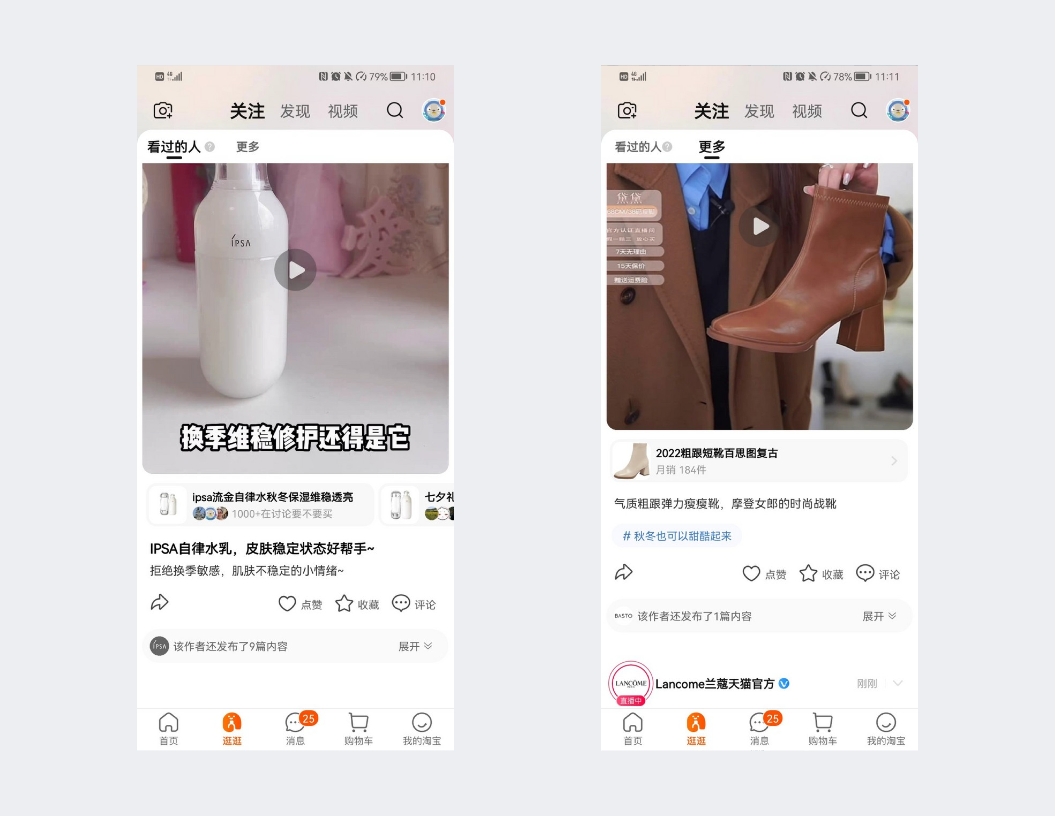 淘宝的关注动态,会自动将店铺相同时间段的动态内容进行折叠,只露出一条动态,用户可点击展开查看发布的折叠动态。