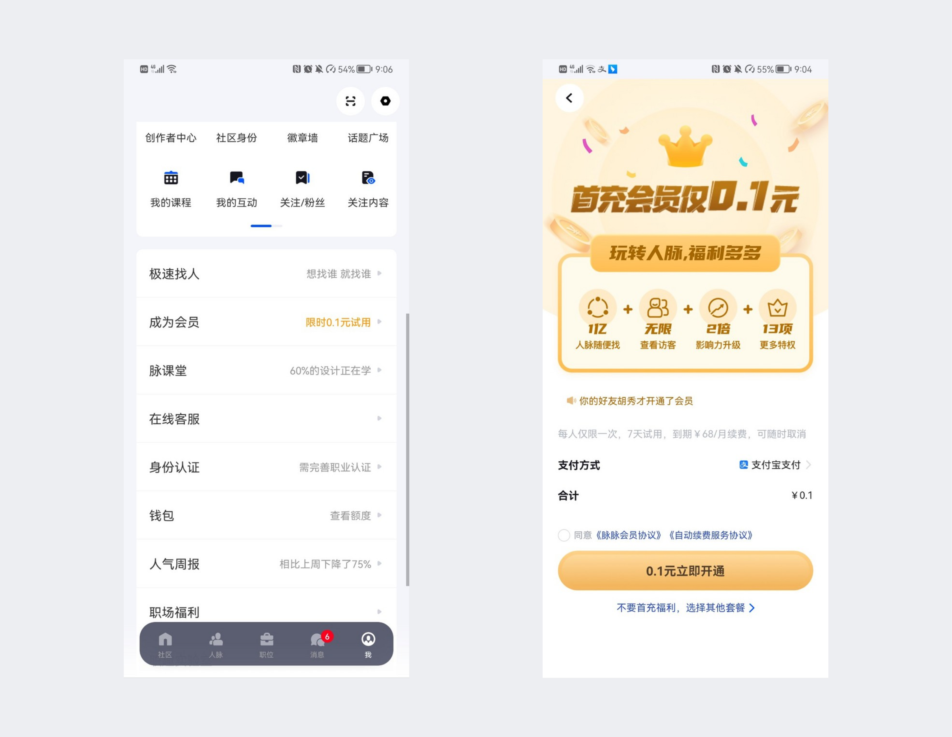 7.脉脉的1分钱开通会员