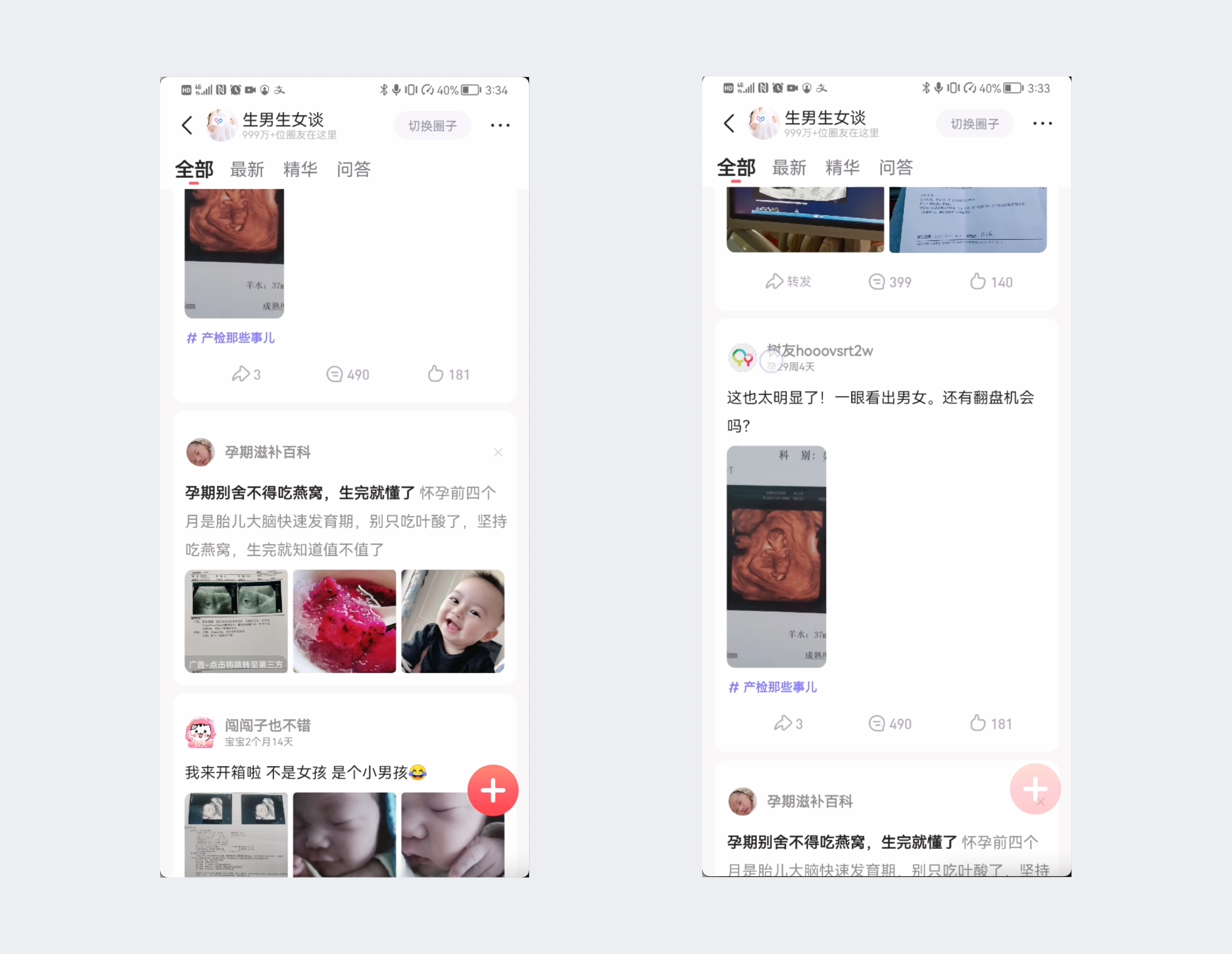 宝宝树的发帖按钮位于界面左下角,当用户手指在界面滑动的时候发帖按钮会变透明,降低存在感。