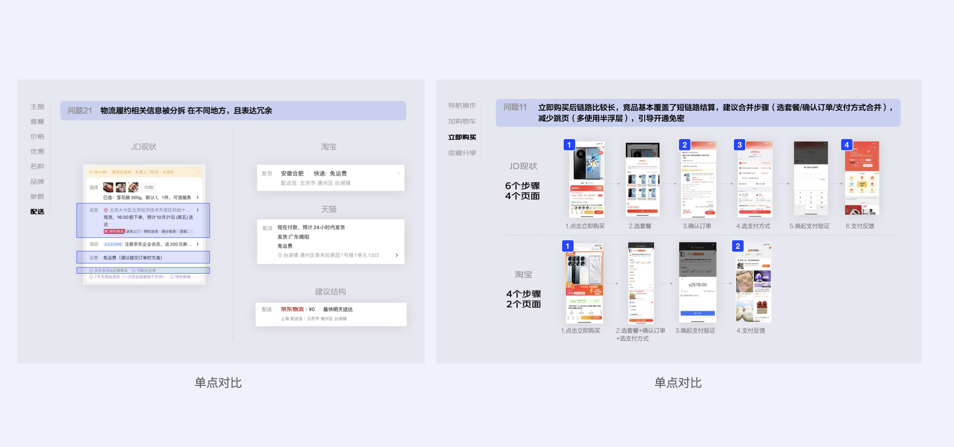 顾名思义,单点对比关注前台信息呈现,即信息触达效率,而流程对比更关注步骤衔接,即操作转化效率。